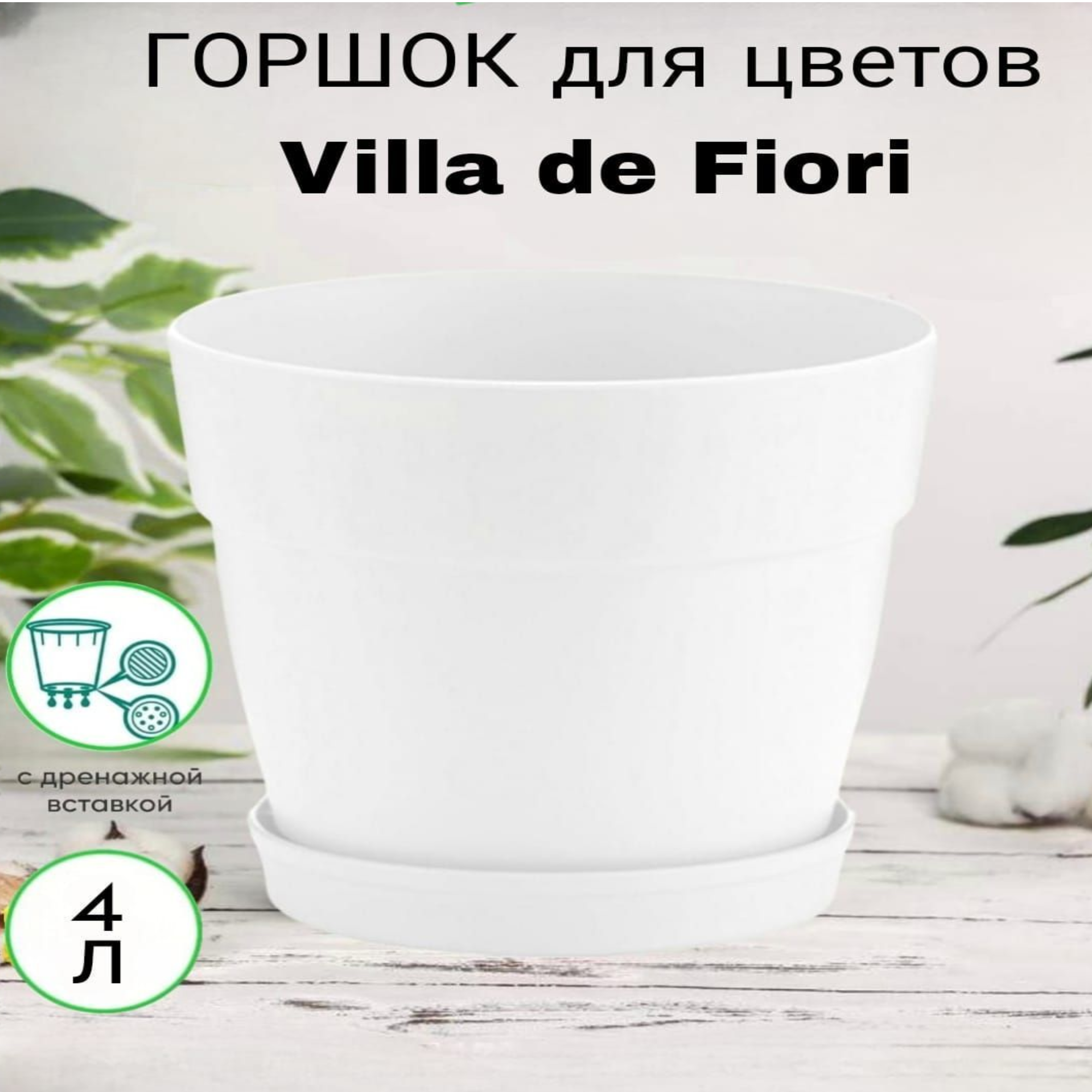 Горшок для цветов с дренажной вставкой 2л, белоснежный жасмин