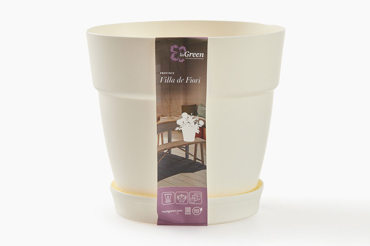 Горшок для цветов InGreen Villa de Fiori, с поддоном, 4 л, белоснежный жасмин