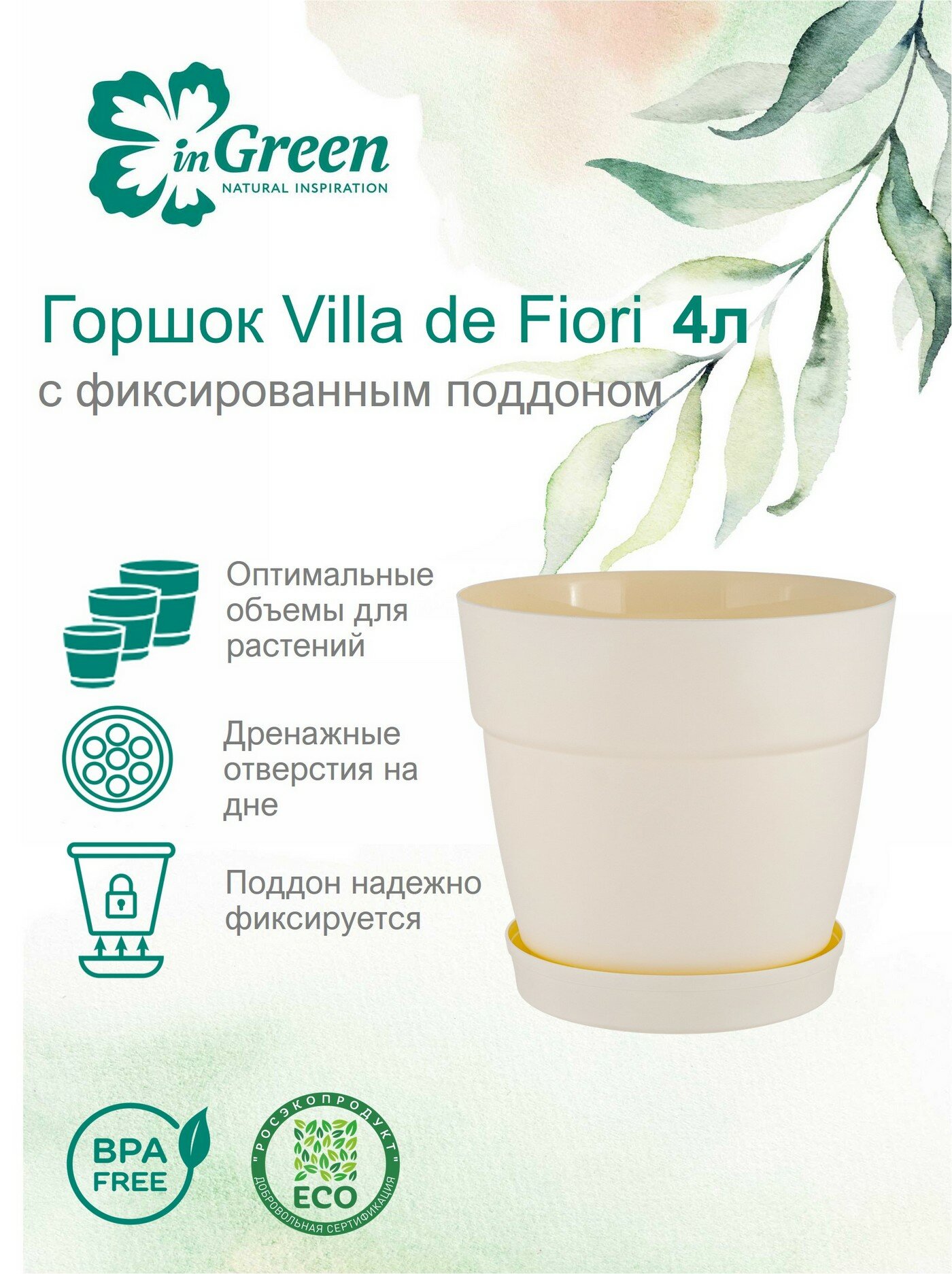 Горшок для цветов InGreen Villa de Fiori с фиксируемым поддоном 2л D170мм белоснежный жасмин