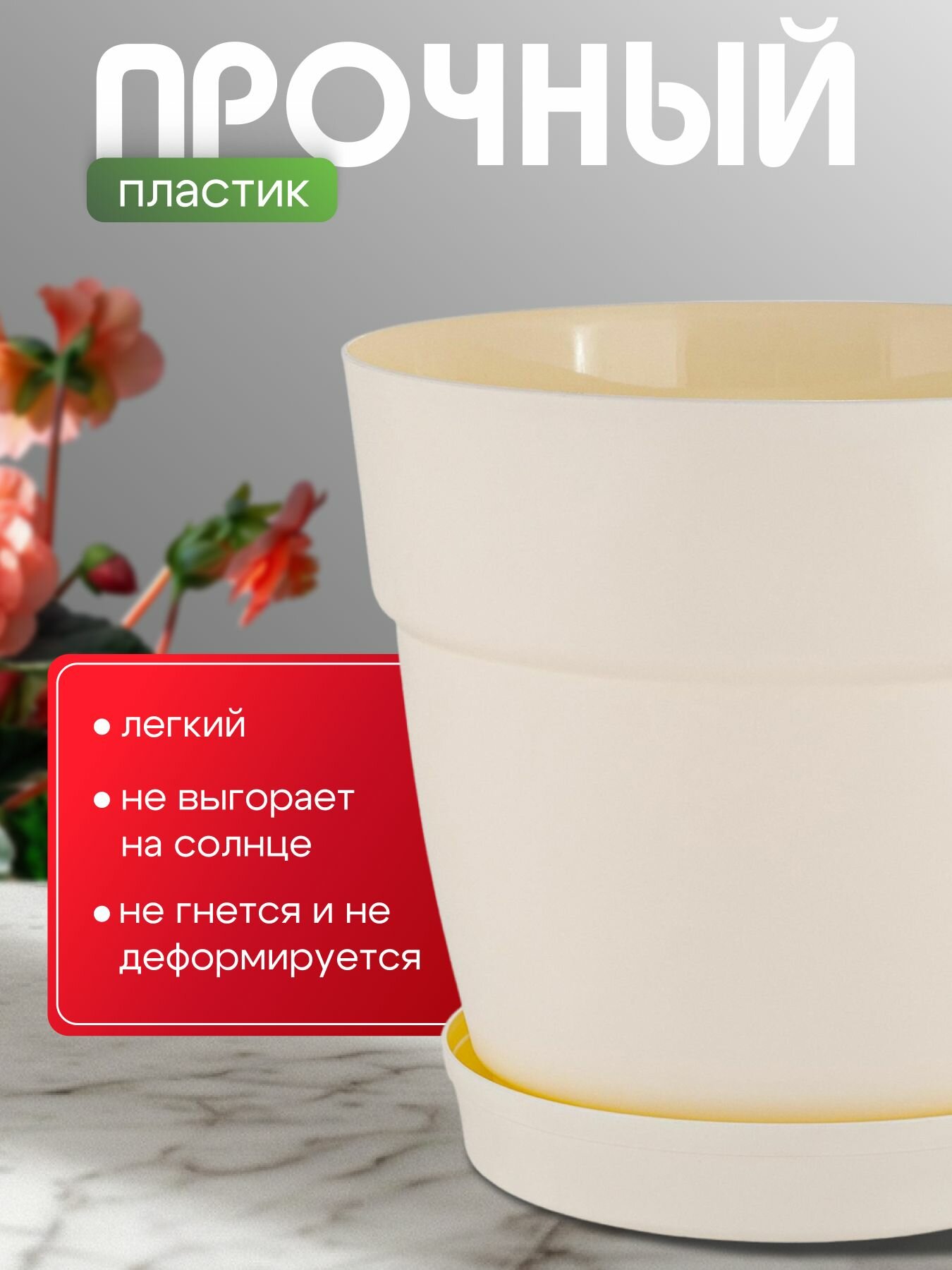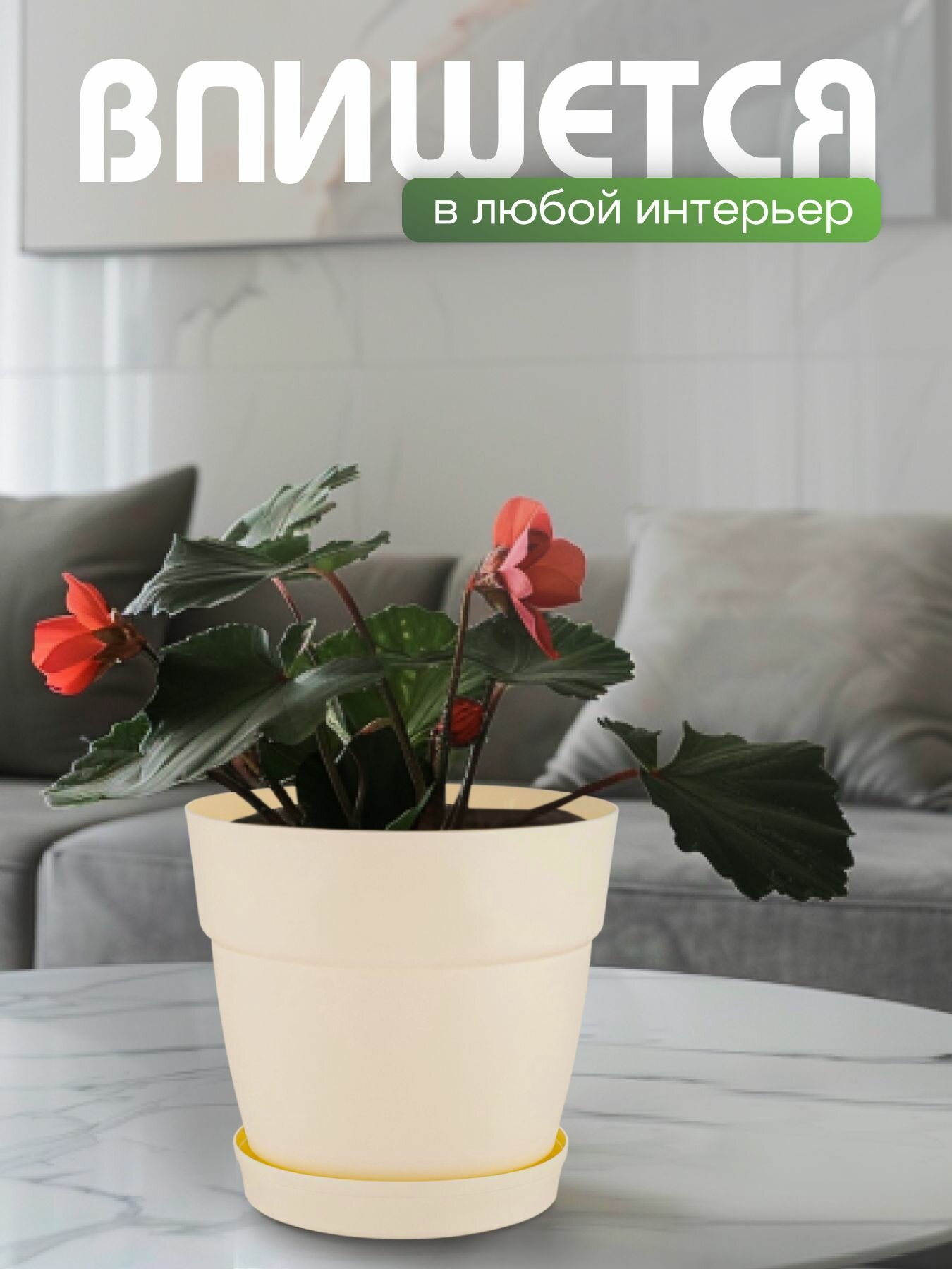 Горшок для цветов 0,65л (ДхШхВ) 11,5х11,5х10,4 см с дренажной сеткой и съемным поддоном, горшок пластиковый, кашпо для цветов уличное