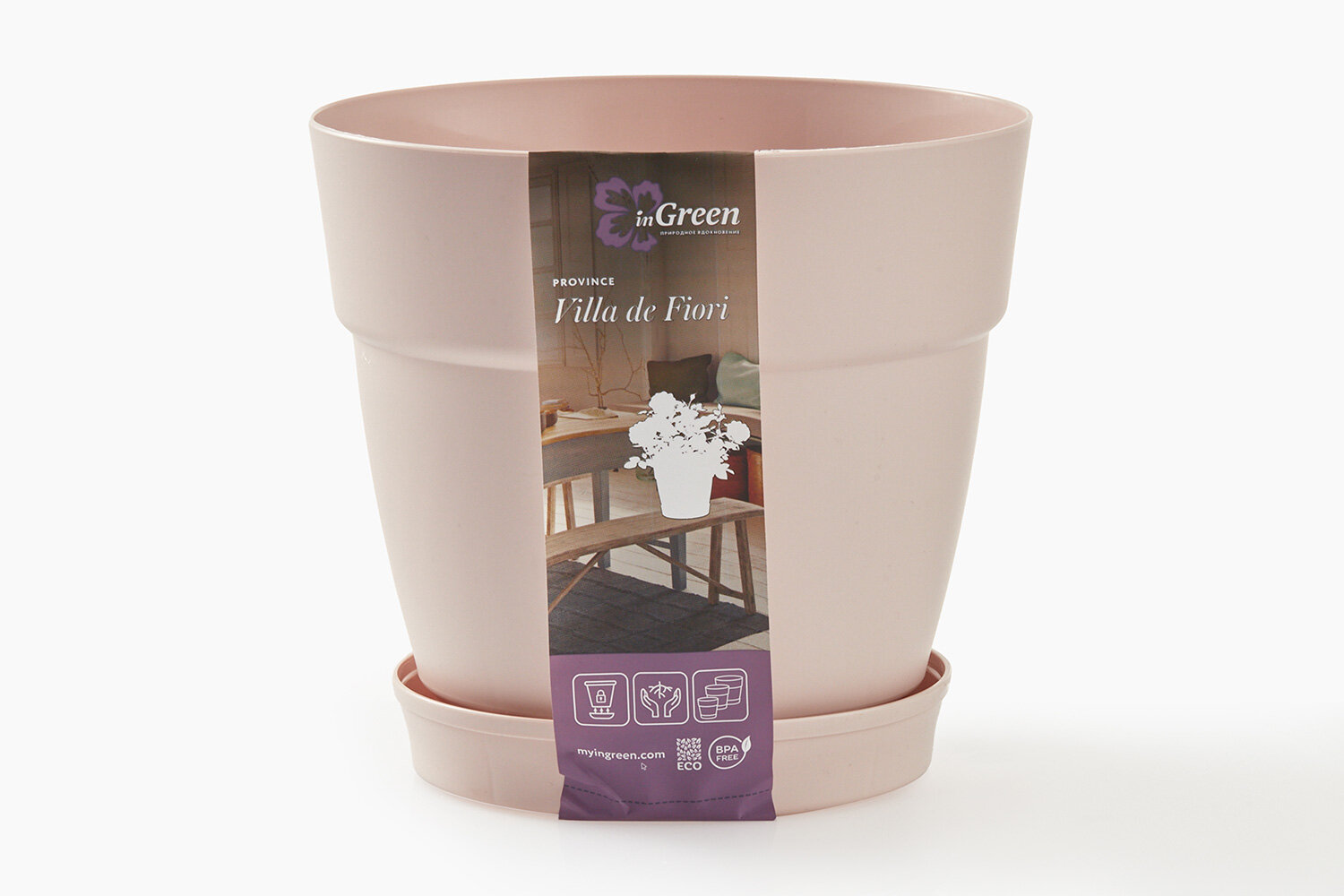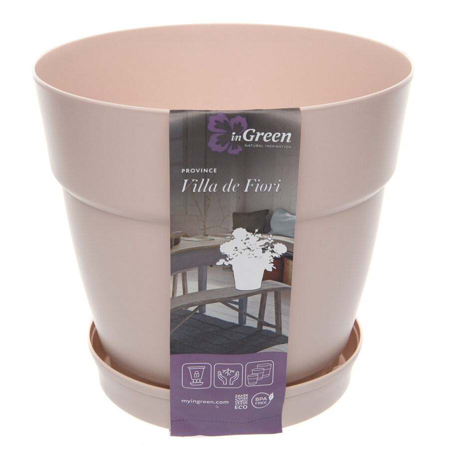 Горшок для цветов InGreen Villa de Fiori, с поддоном, 4 л, белоснежный жасмин
