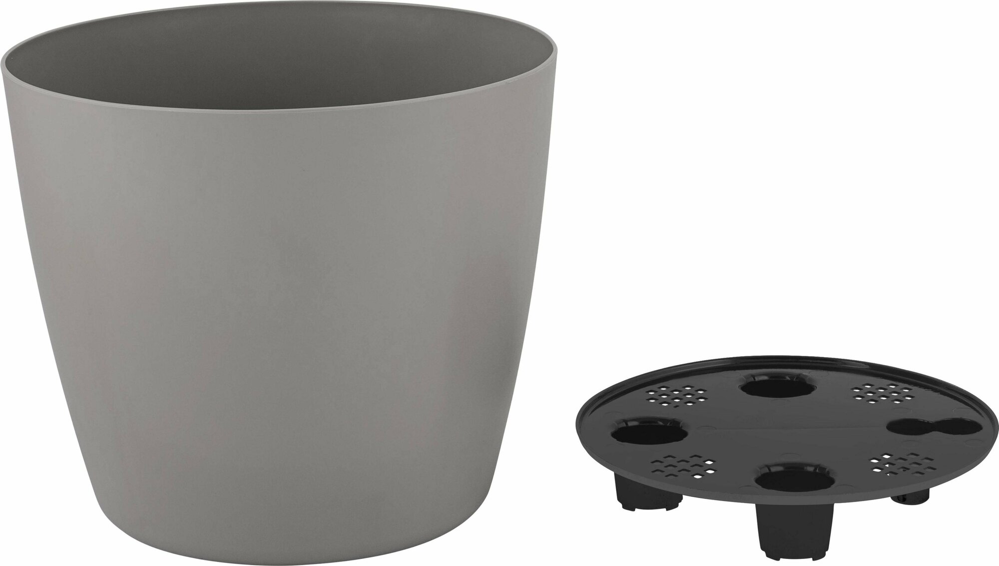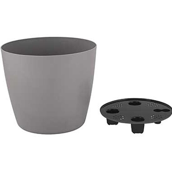 Горшок для цветов InGreen / Ин Грин Wave с дренажной сеткой и съемным поддоном, из полипропилена, вулканический серый, диаметром 27см, объемом 10л