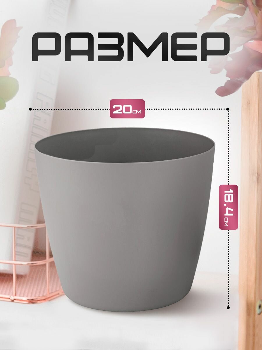Горшок для цветов пластиковый 2,5л d-17,5см «Wave» с дренажной сеткой и съемным поддоном, вулканический серый