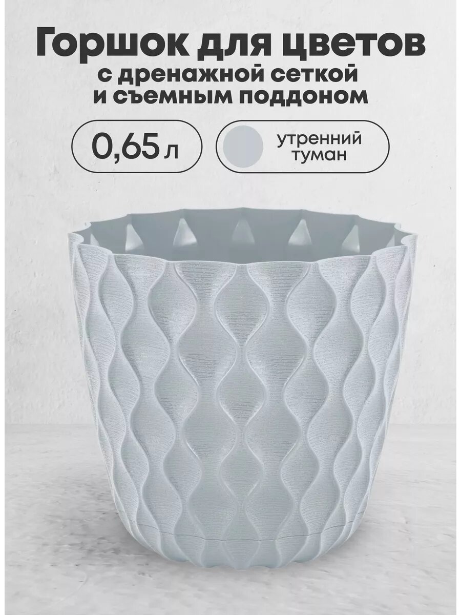 СохранитьГоршок для цветов InGreen Wave, с поддоном, 0,65 л, утренний туман интересное:
