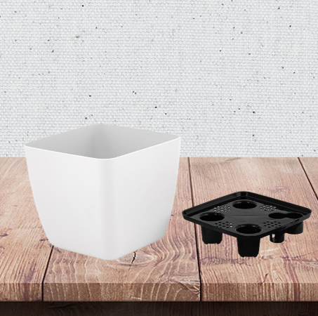 Горшок для цветов 1,4л (ДхШхВ) 14,5х14,5х13,2 см с дренажной сеткой и съемным поддоном, горшок цветочный, кашпо для цветов уличное