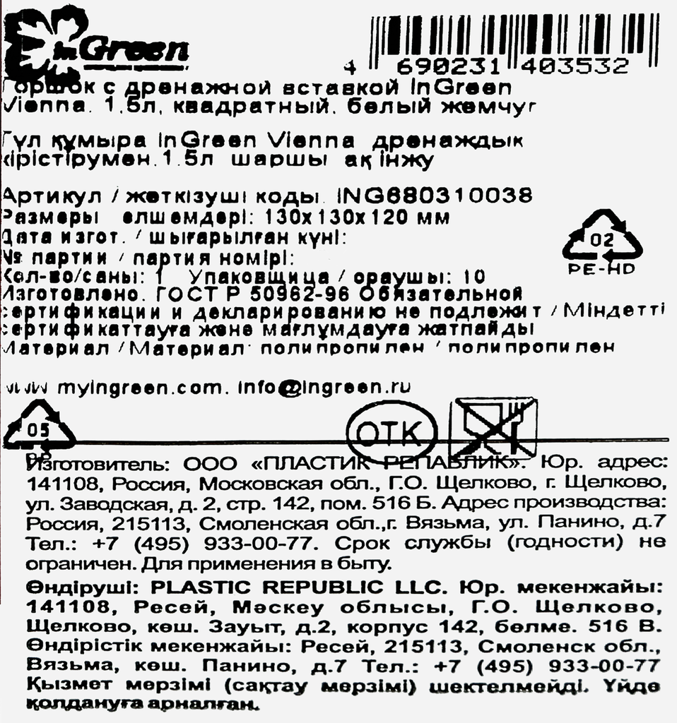 СохранитьГоршок для цветов InGreen Vienna Orchid, квадратный, 1,5 л, белый жемчуг интересное:
