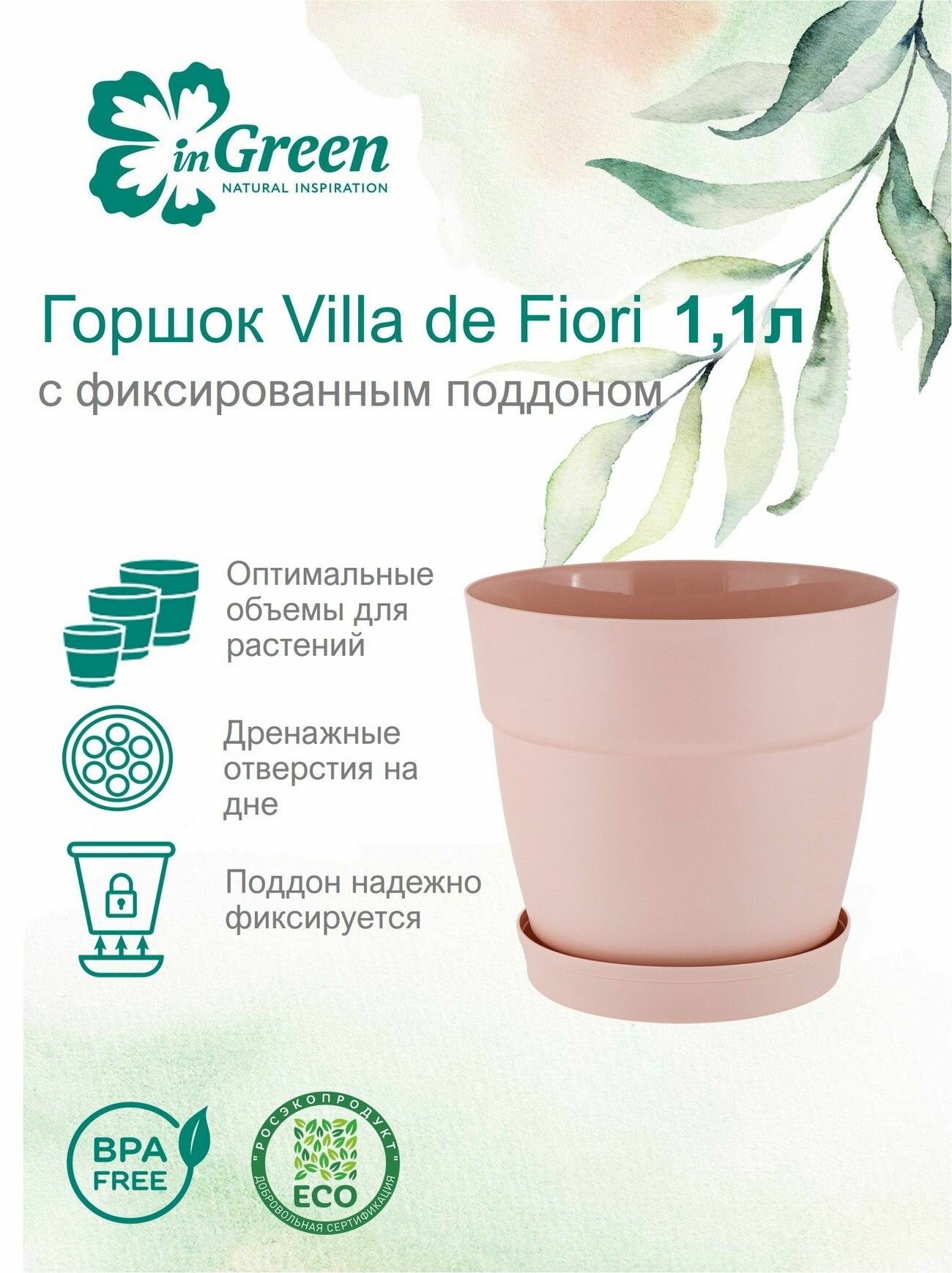 СохранитьГоршок для цветов InGreen Villa de Fiori с поддоном 1,1л, D130мм, английская роза интересное: