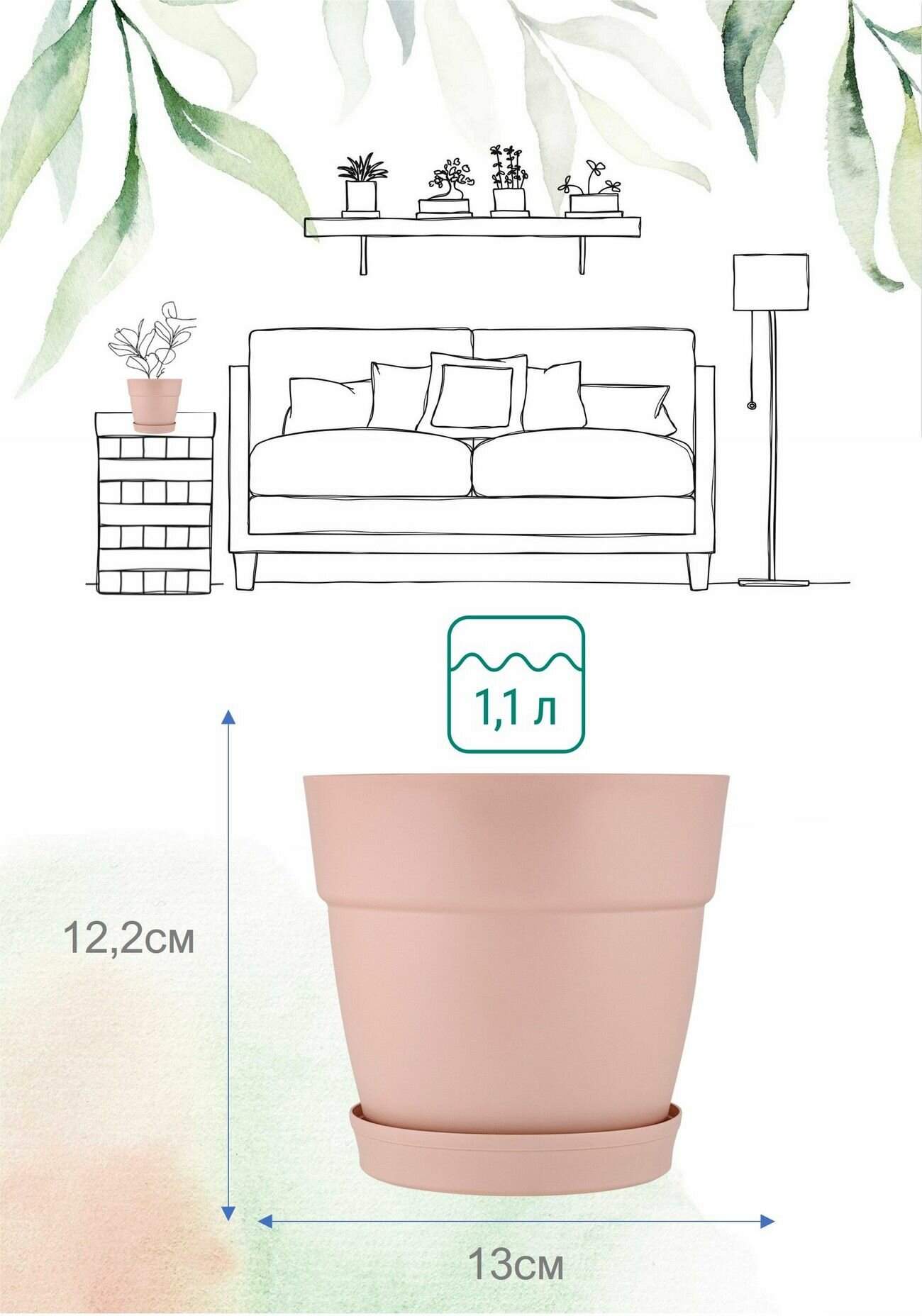 Горшок цветочный Sima-land Акварель розовая 1 л (7454672)