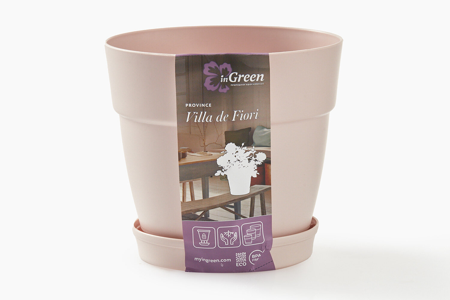 Горшок для цветов InGreen Villa de Fiori, с поддоном, 4 л, белоснежный жасмин