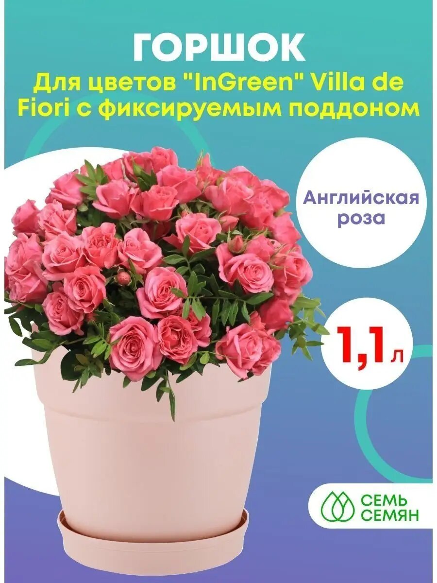 Купить Горшок для цветов InGreen Villa de Fiori с поддоном 1,1л, D130мм, английская роза