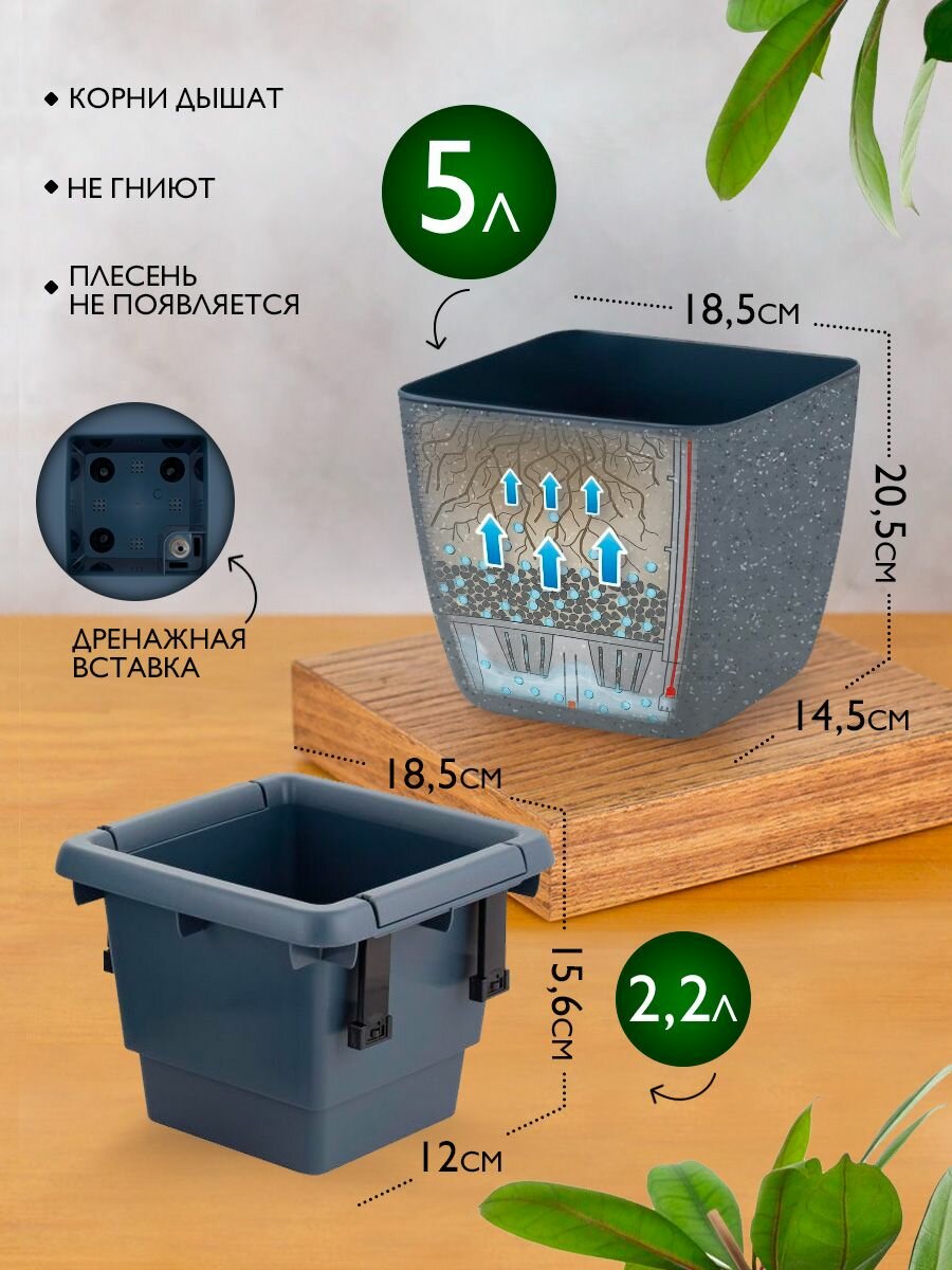 Горшок для цветов с системой автополива 5 л, темный камень 6227