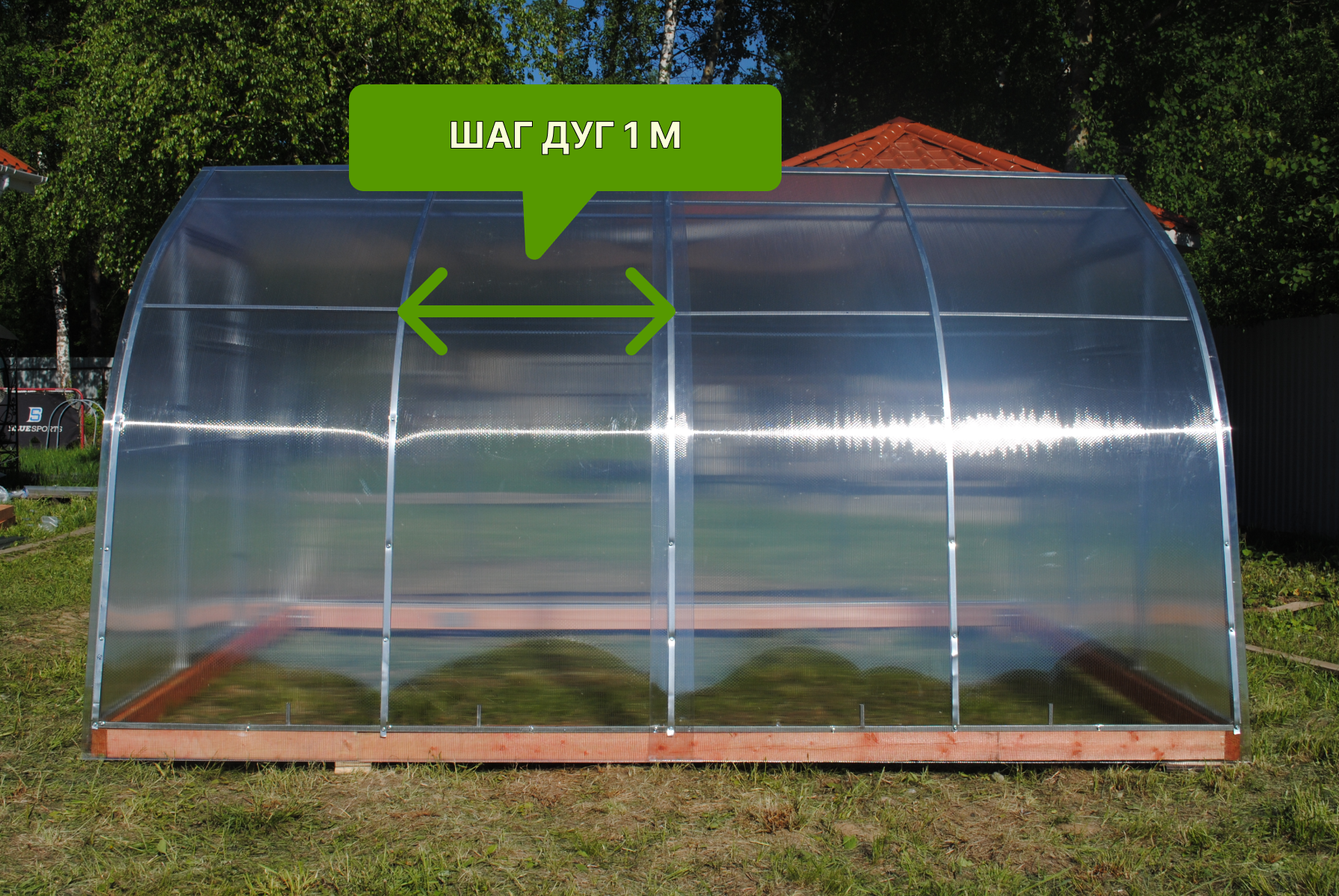 Теплица из поликарбоната Стрелка 2.5x6 метров, оцинкованная труба 25x25, двери и форточки