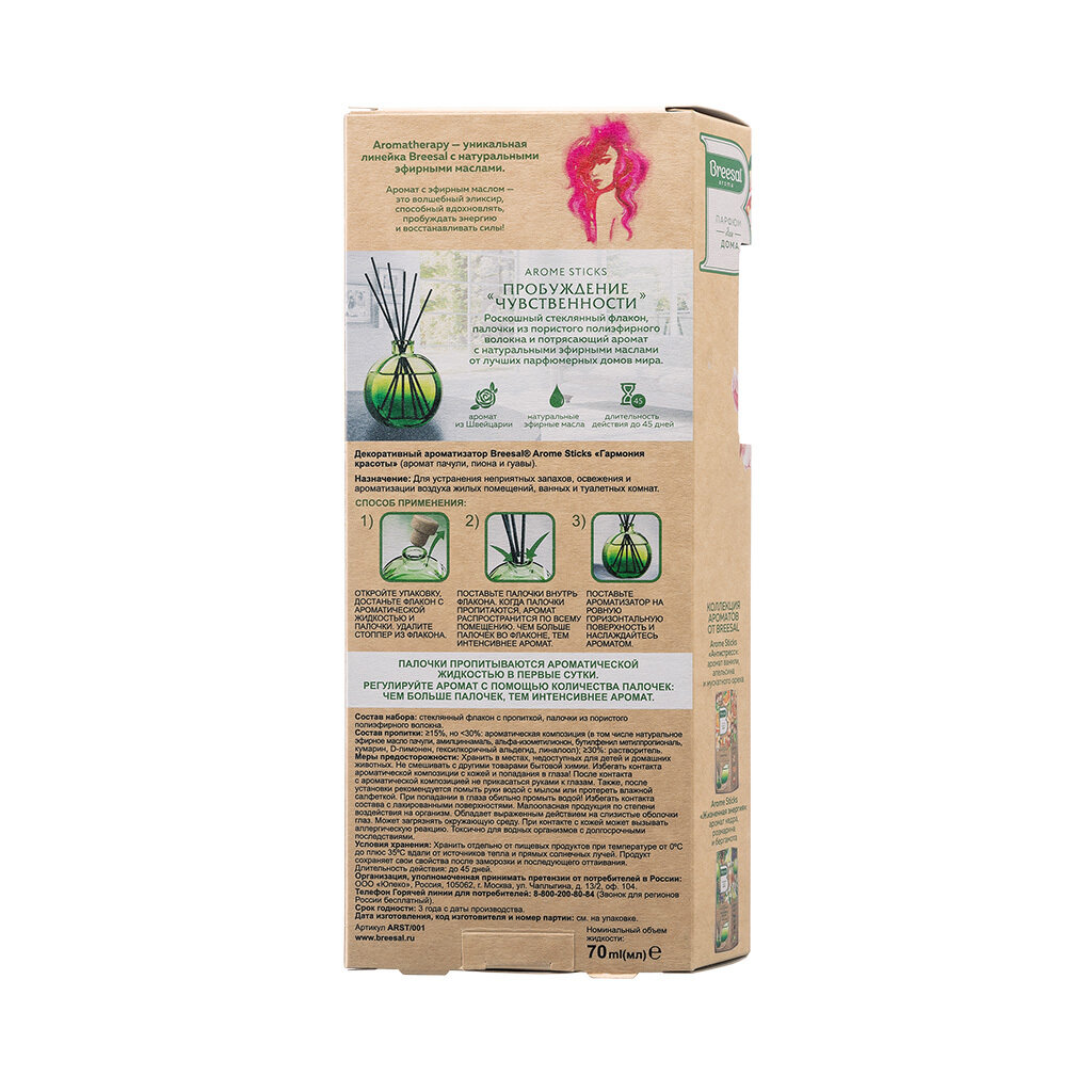 Диффузор для дома с палочками Breesal Arome Sticks Ароматизатор для дома, Пробуждение чувственности 70 мл