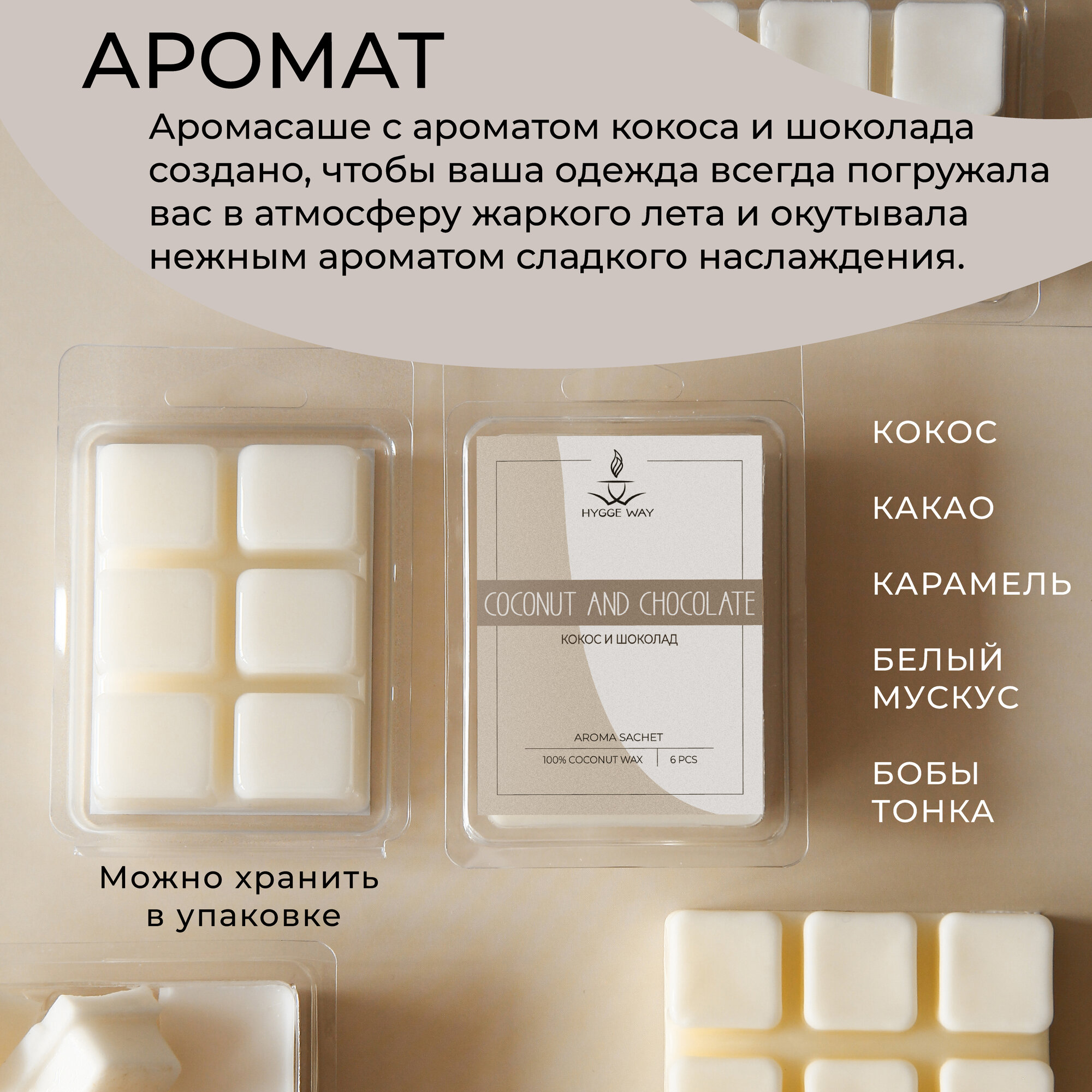 Купить Саше для шкафа и белья ароматическое "Hygge Way". Ароматизатор в шкаф и мелтсы для одежды "Кокос и шоколад"