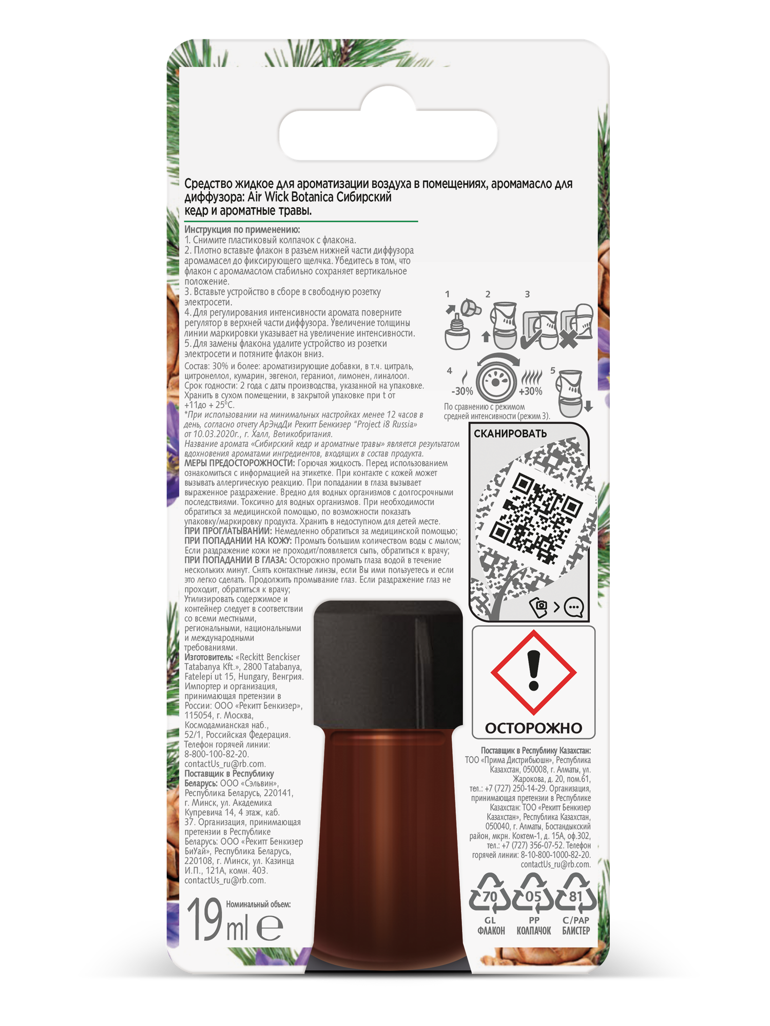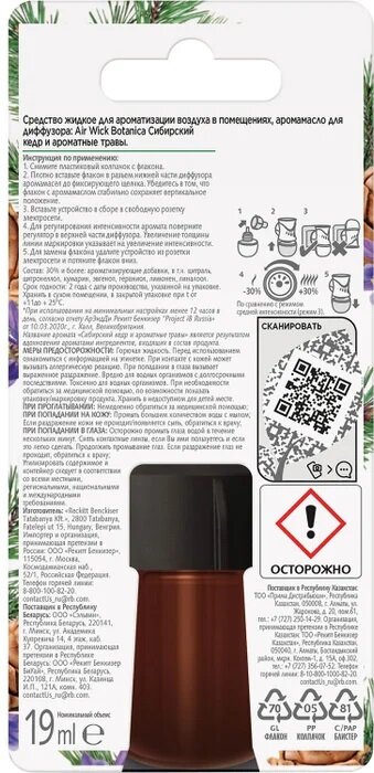 | Подробная комплектация | Сменный флакон к диффузору аромамасел Airwick Botanica Сибирский Кедр 19 мл. - 1 шт |