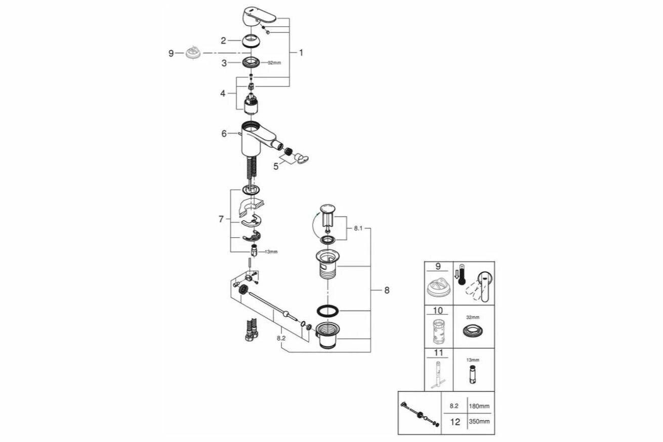 Смеситель для биде Grohe Eurosmart Cosmopolitan, сливной гарнитур 32839000