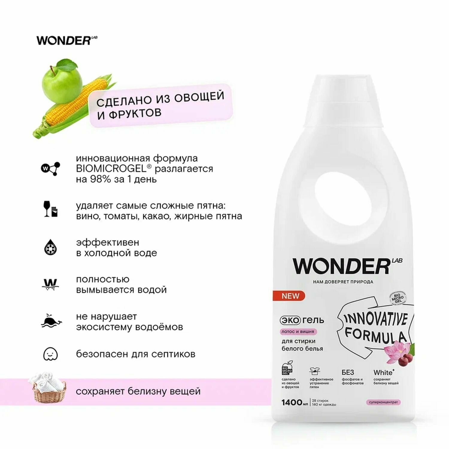 Экогель для стирки WONDER LAB "Лотос и Вишня", для белого белья, 1,4 л (WL1400WGL1LC-V)