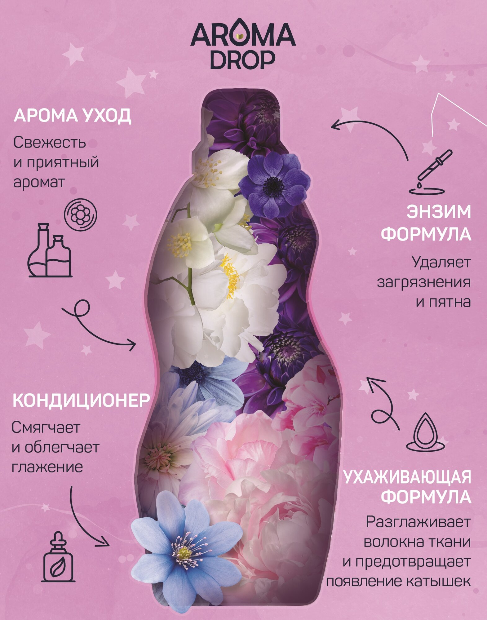 AROMA DROP Набор: 2 в 1 Гель для стирки белья и кондиционер 1 л (2 шт)