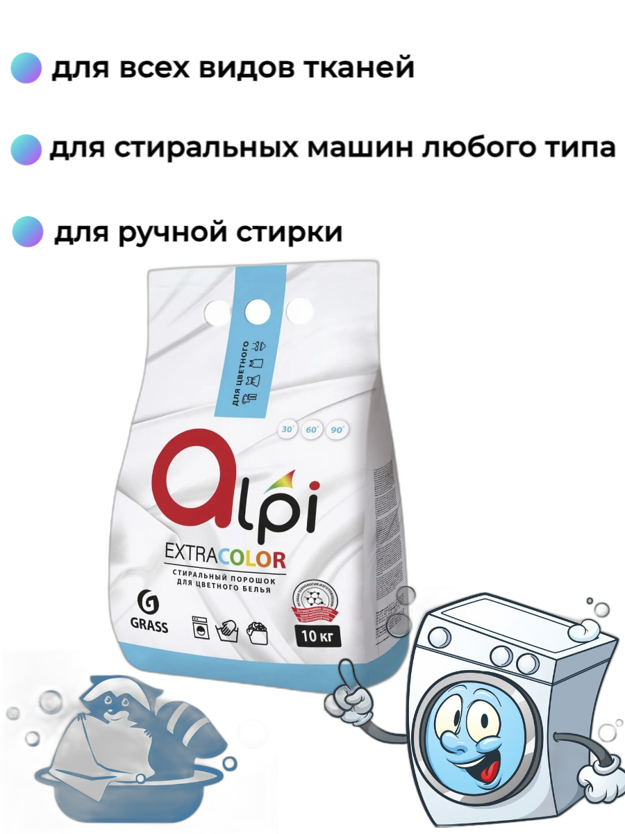 Стиральный порошок Grass Alpi Extracolor для цветного белья, 10 кг