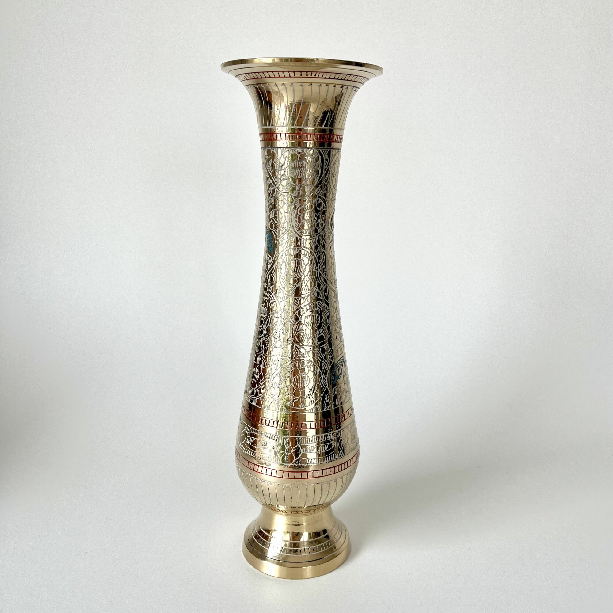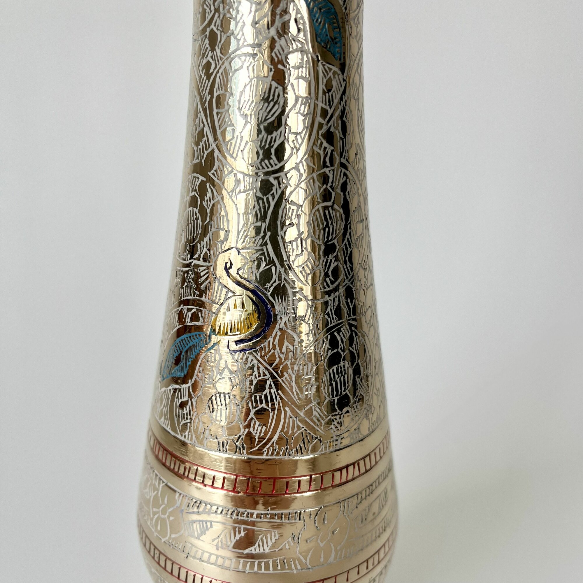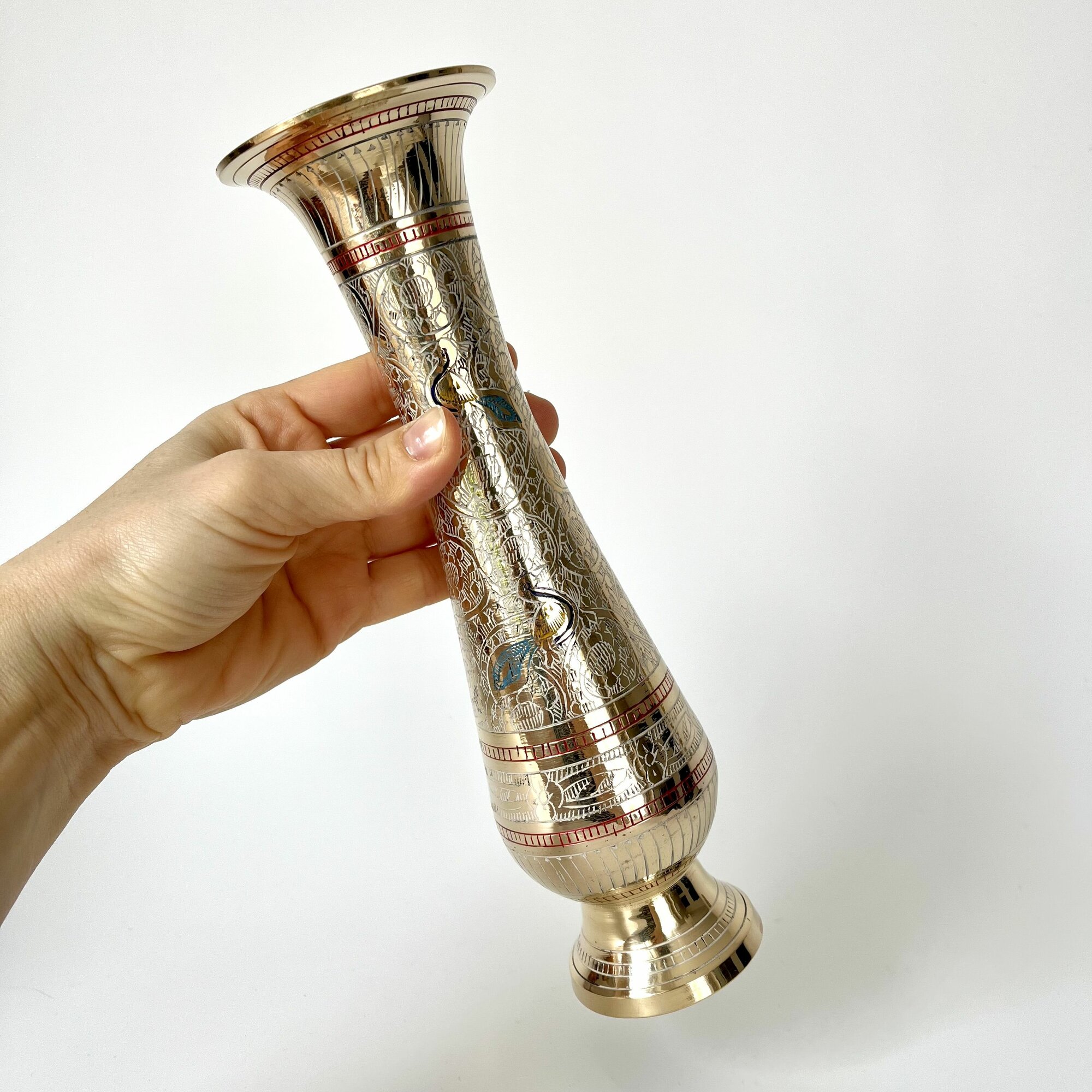 Ваза металлическая, латунь, эмаль, высота 25см, ручная работа, Индия подарок учителю