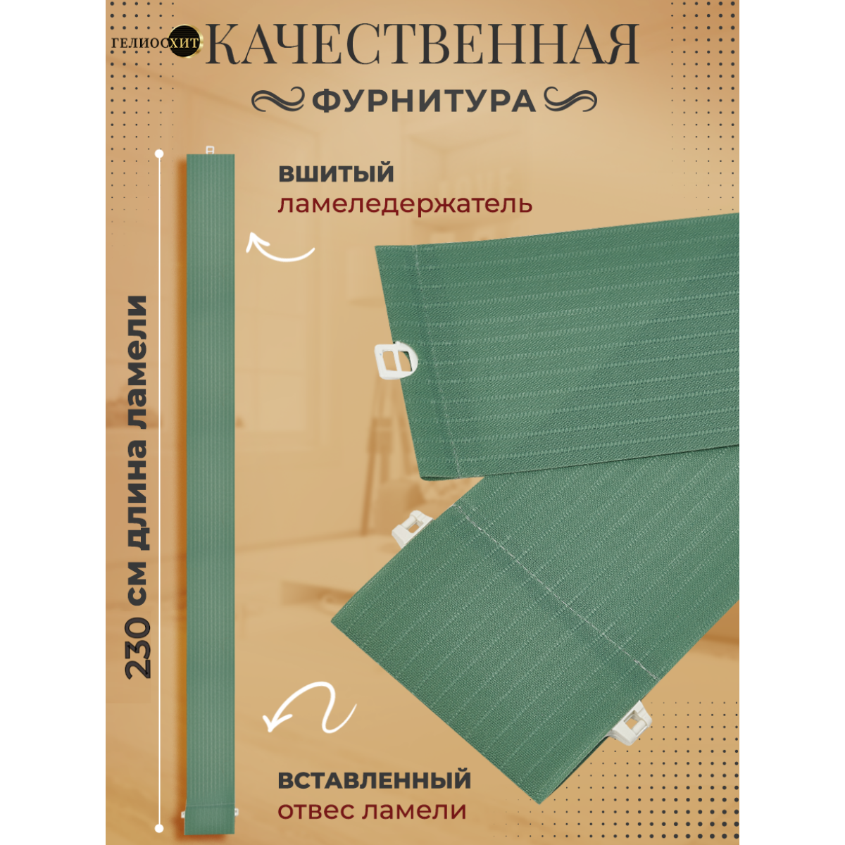 Ламели для вертикальных жалюзи 25 шт высотой 235 см темно-бежевого цвета, карниз приобретается отдельно, гелиосхит.