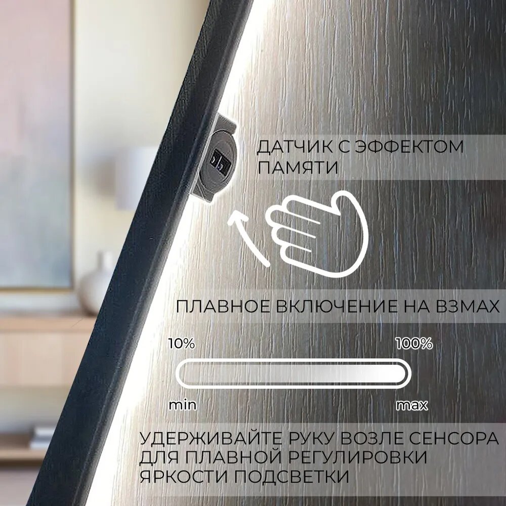 Зеркало 70 см графит настенное с подсветкой, сертифицировано