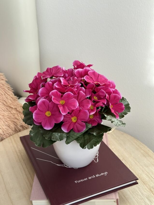Искусственные фиалки в горшке / Искусственные цветы для декора в кашпоа в кашпо