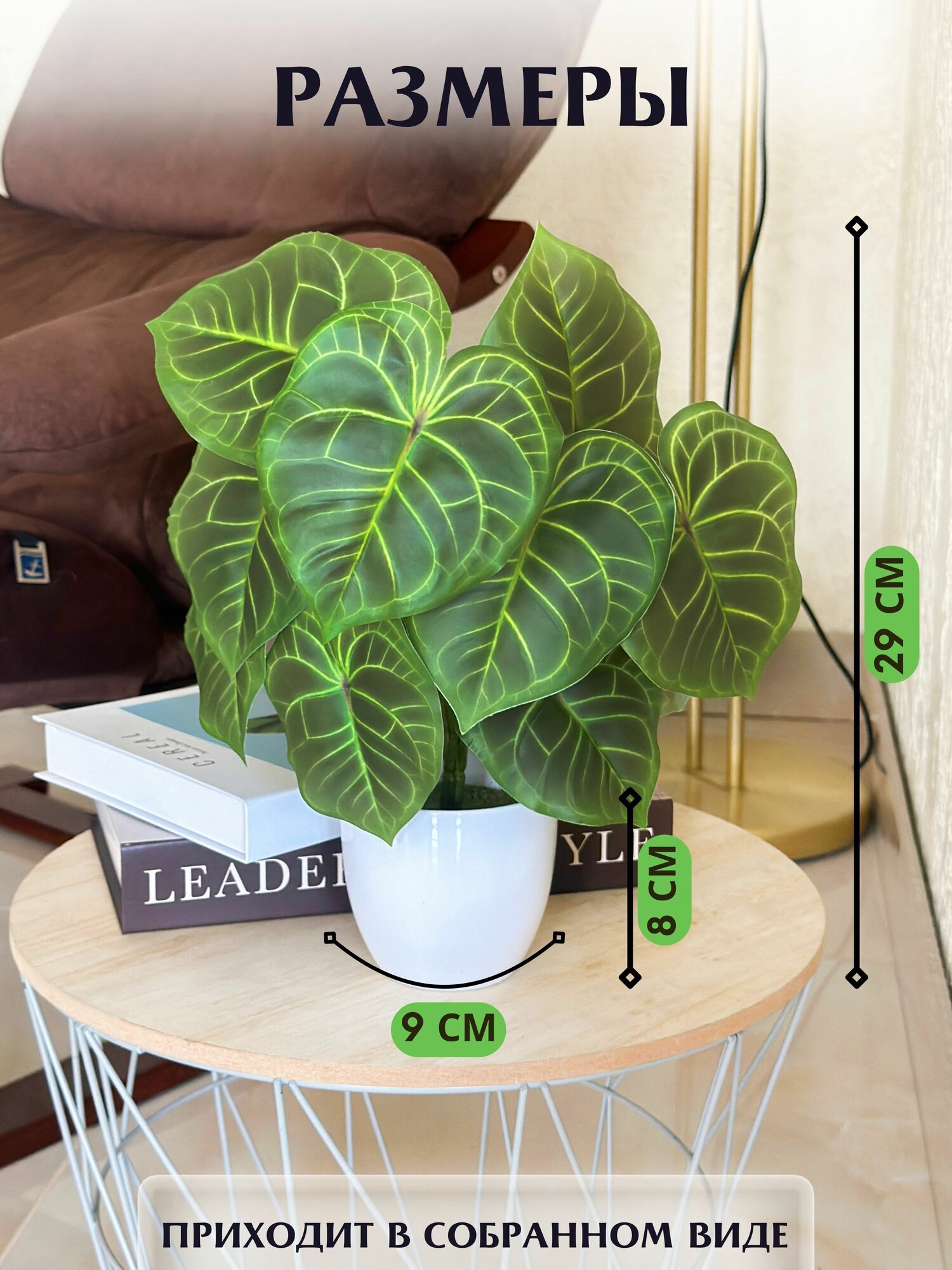Искусственные декоративные цветы Алоказия в горшке / Искусственные цветы для декора в кашпо