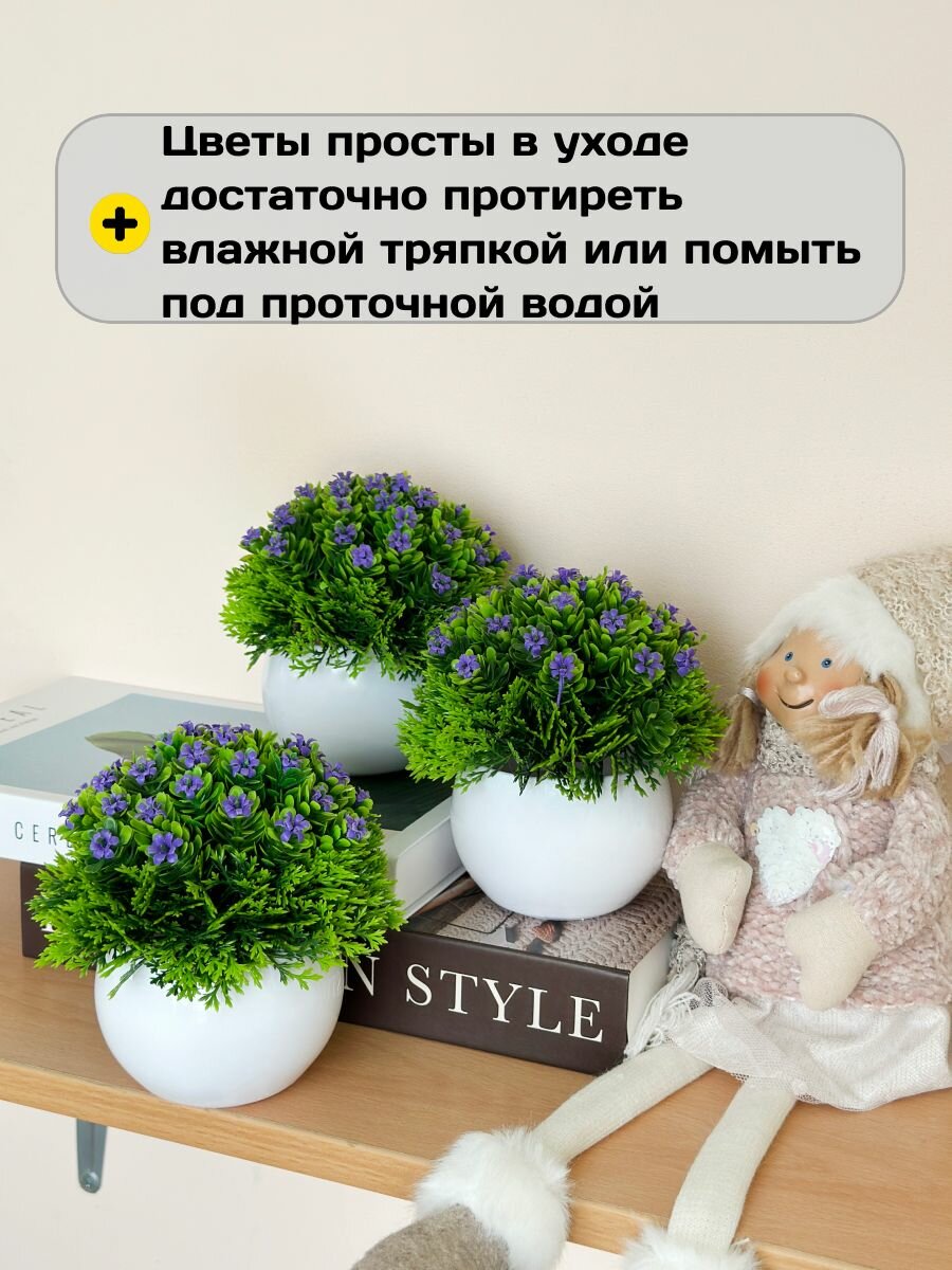 Искусственные цветы декоративные кусты в кашпо набор 3 шт