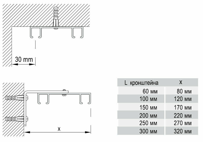 Алюминиевый потолочный карниз для штор двухрядный длина 300см