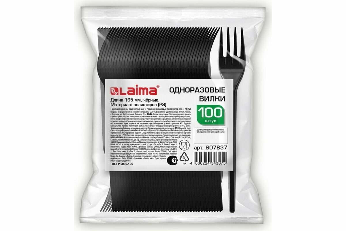 Вилка одноразовая Лайма Laima пластиковая 165 мм, черная, комплект 100 шт., стандарт, 607837 интересное: