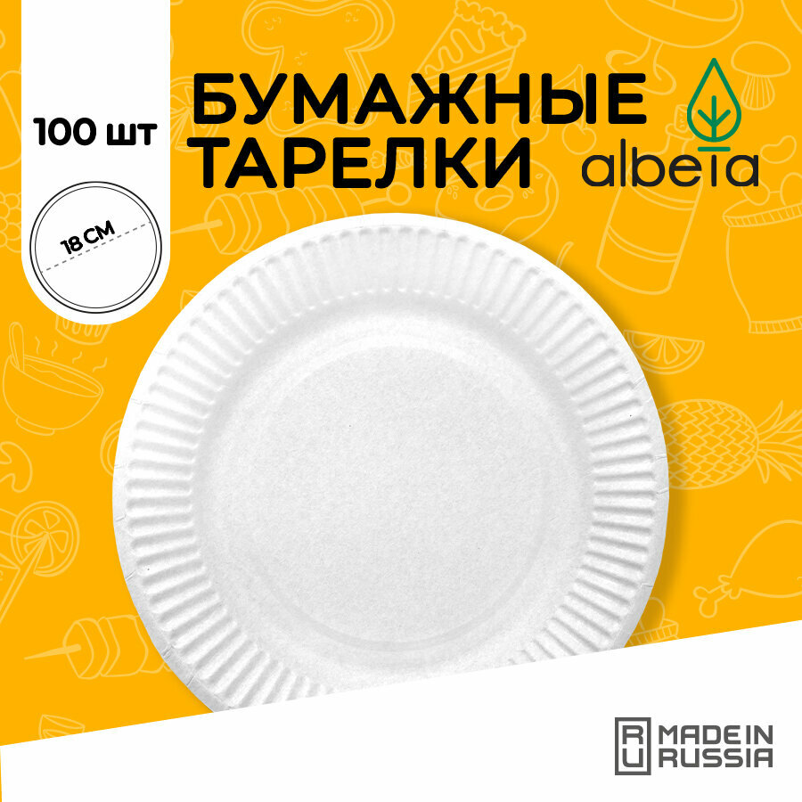 Купить Тарелки бумажные одноразовые для праздника 100 штук 18 см