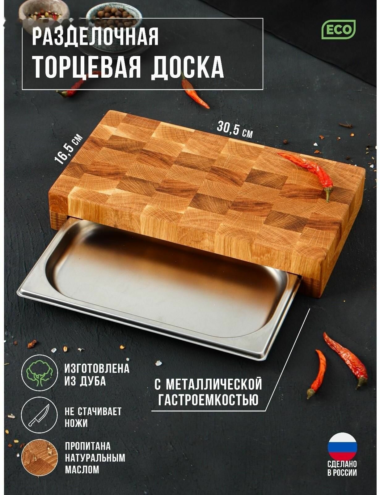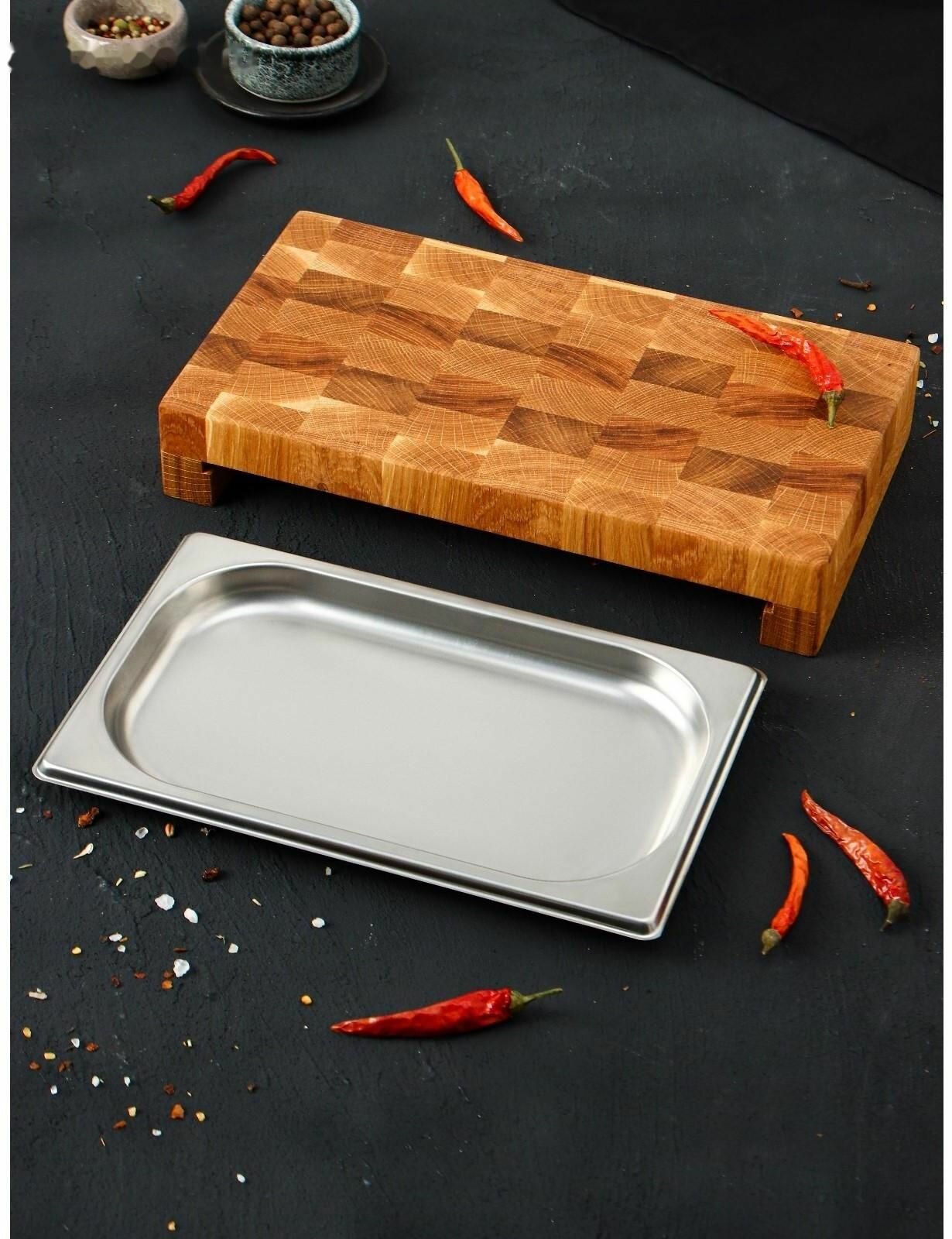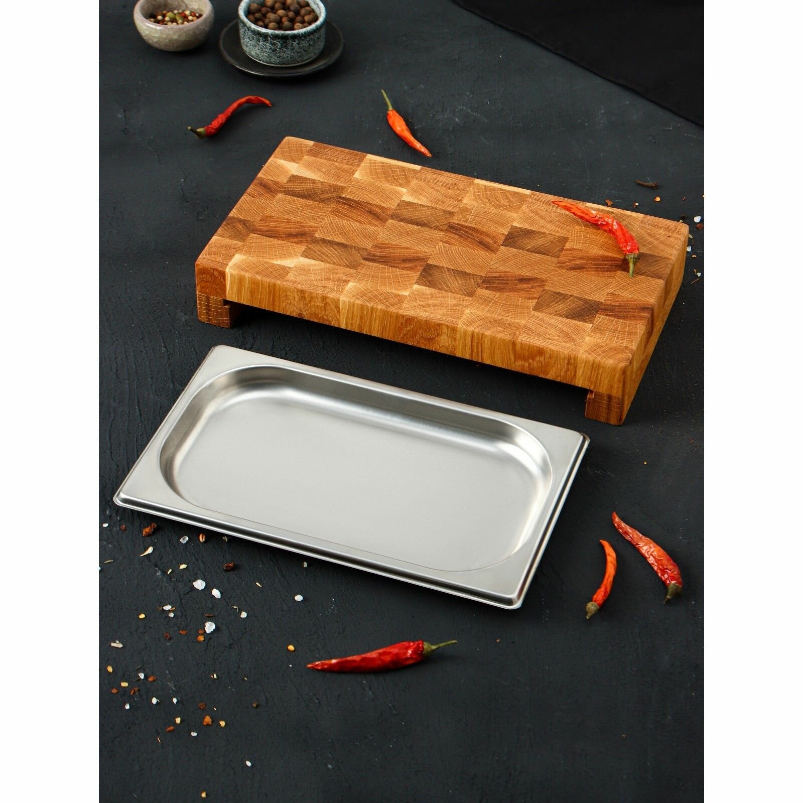 Купить Доска разделочная торцевая с гастроемкостью металлической Mаgistrо, 30,5×16,5×5 см, дуб