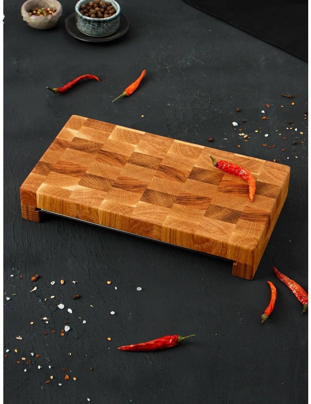 Доска разделочная деревянная для кухни набор + подставка, Набор 2 в 1