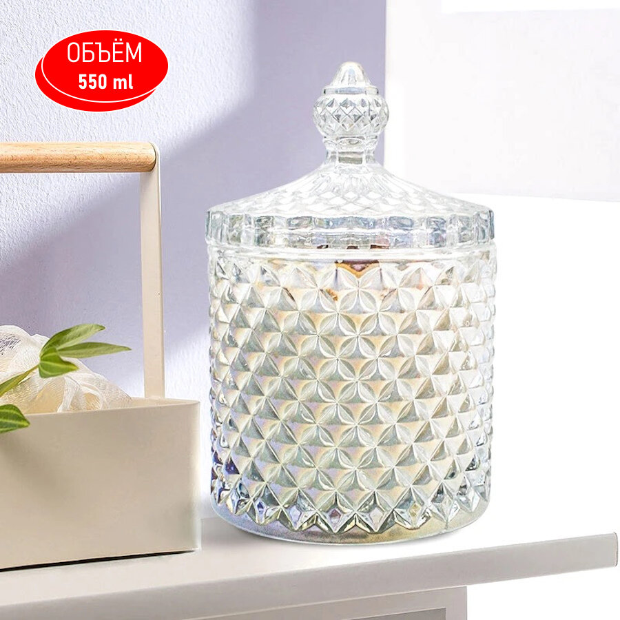 Конфетница стеклянная с крышкой 550ml, большая сахарница, ваза для конфет, банка для хранения, ваза для орехов и сухофруктов, мармелада