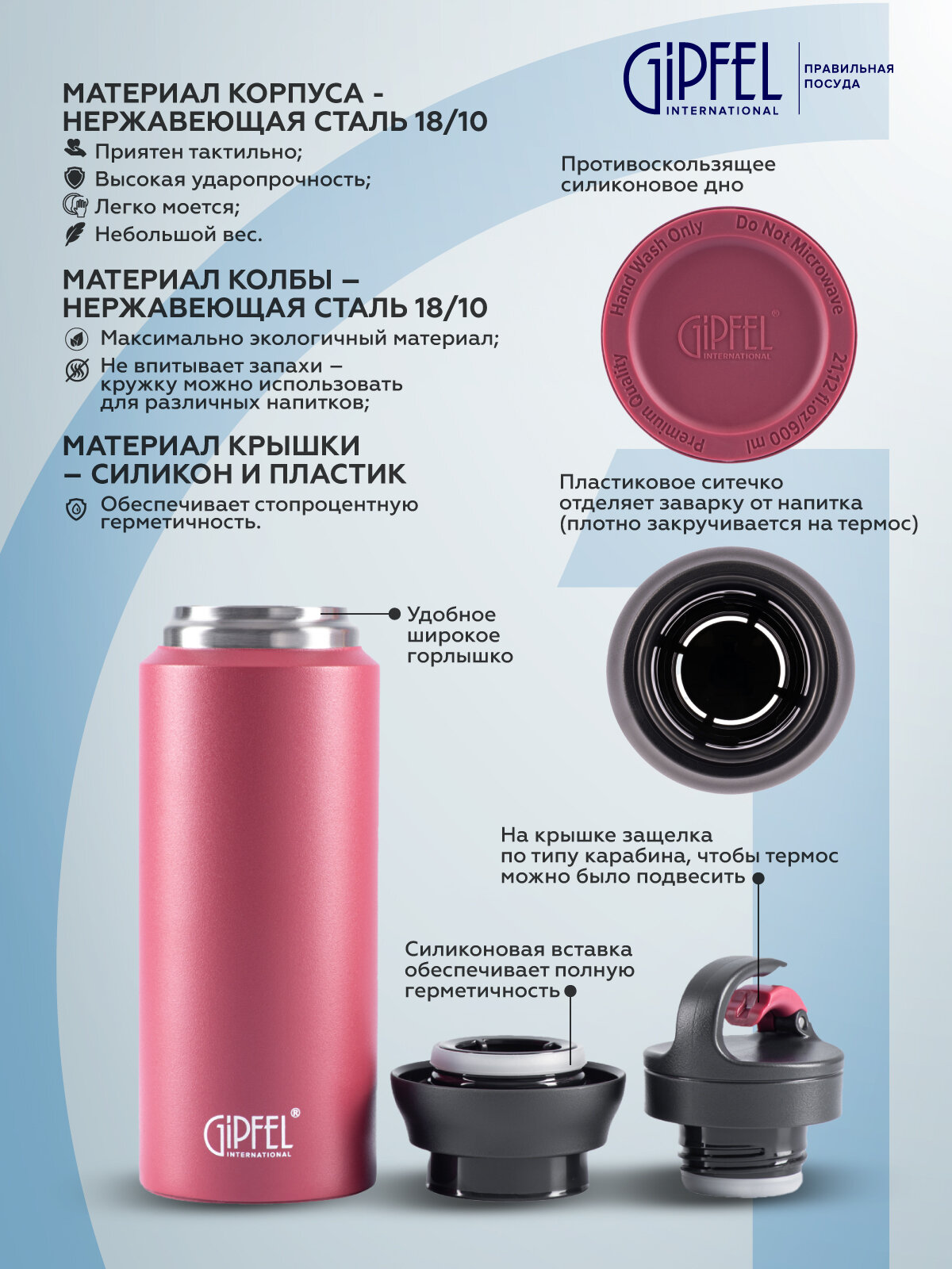 Термос вакуумный Gipfel Ontario 51792 600 мл бордовый интересное: