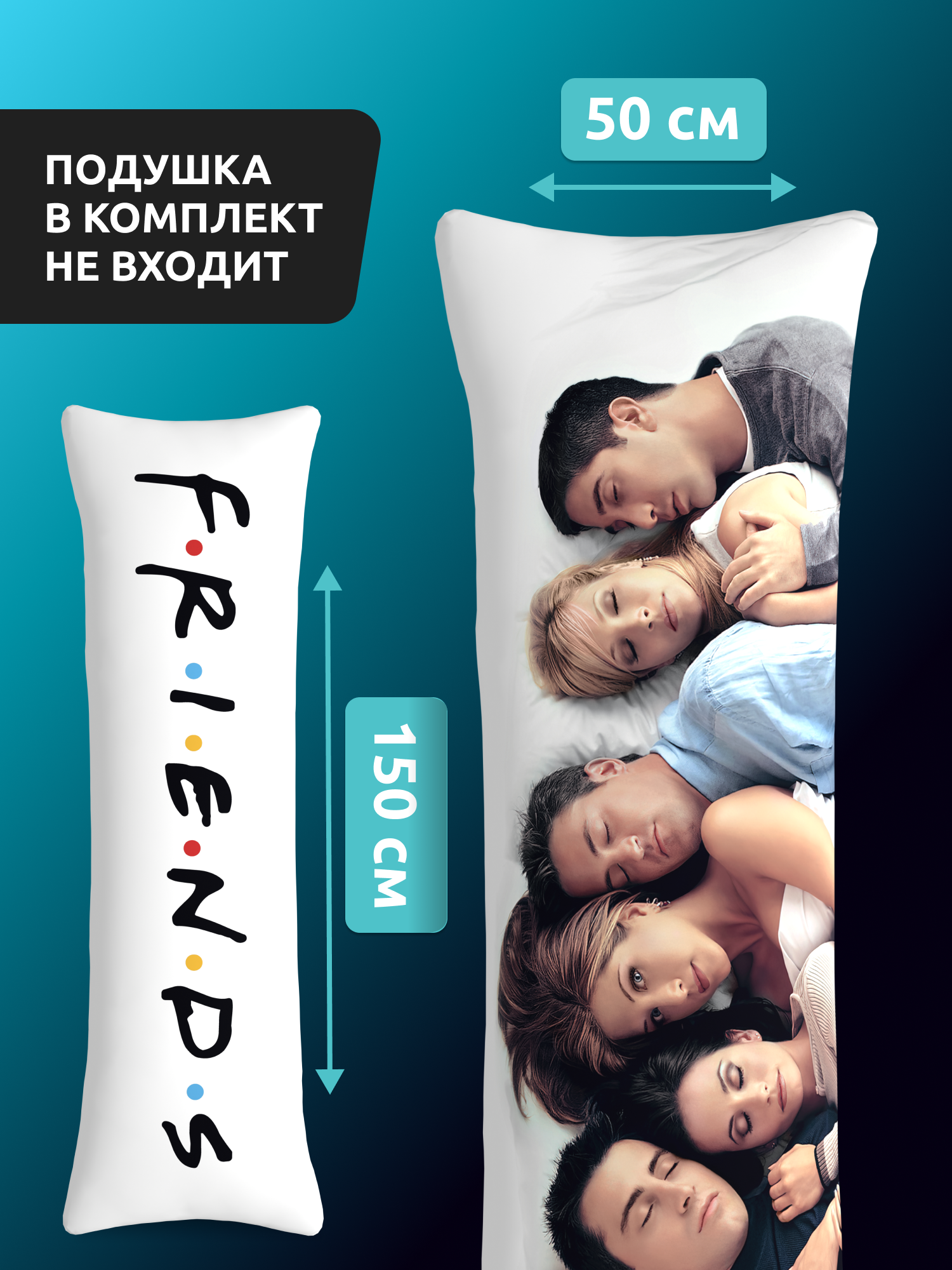 СохранитьНаволочка для дакимакуры длинная с принтом Друзья 150х50 см / чехол на подушку для обнимашек интересное: