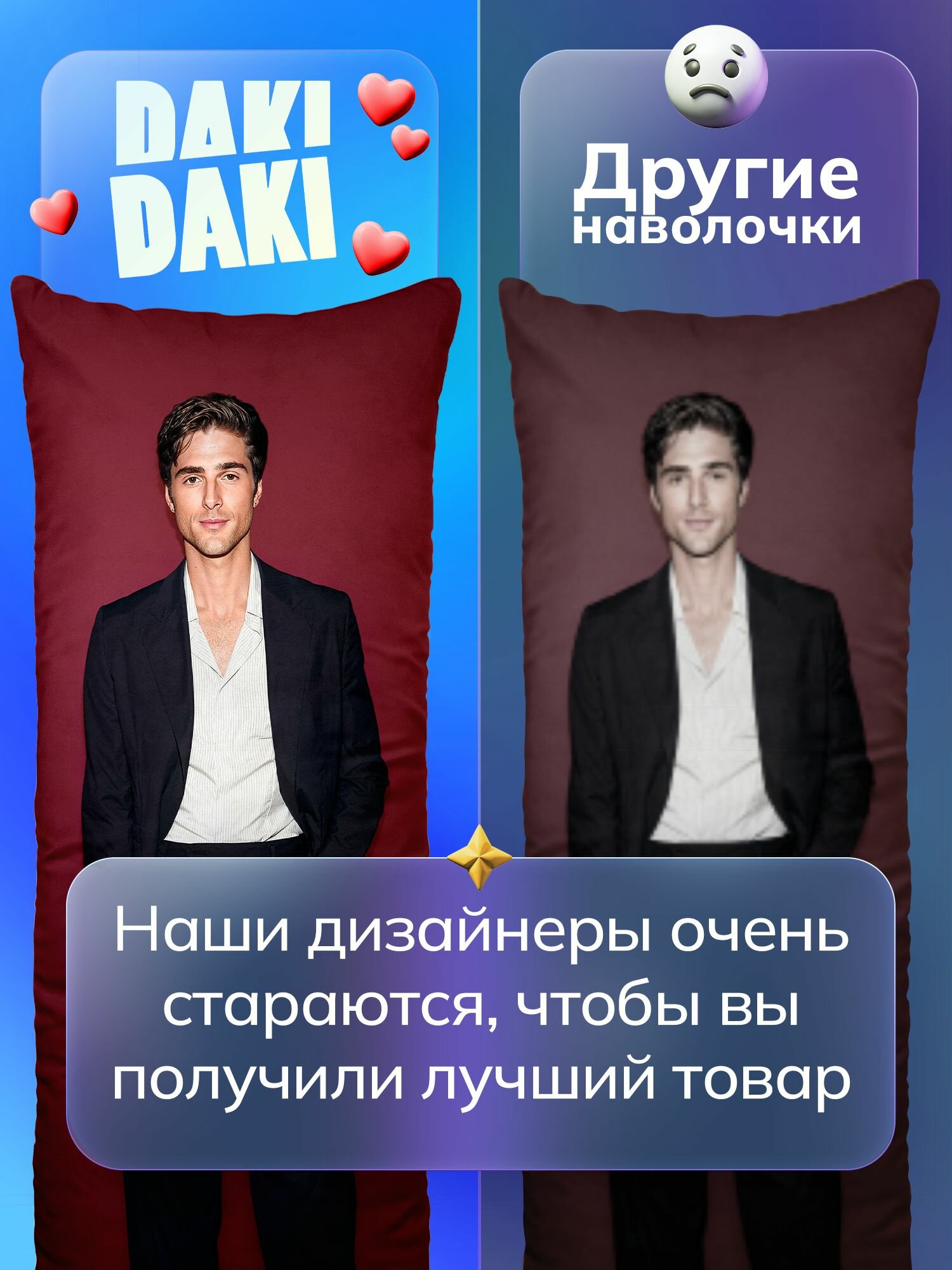 СохранитьНаволочка для дакимакуры длинная с принтом Джейкоб Элорди 150х50 см / чехол на подушку для обнимашек интересное: