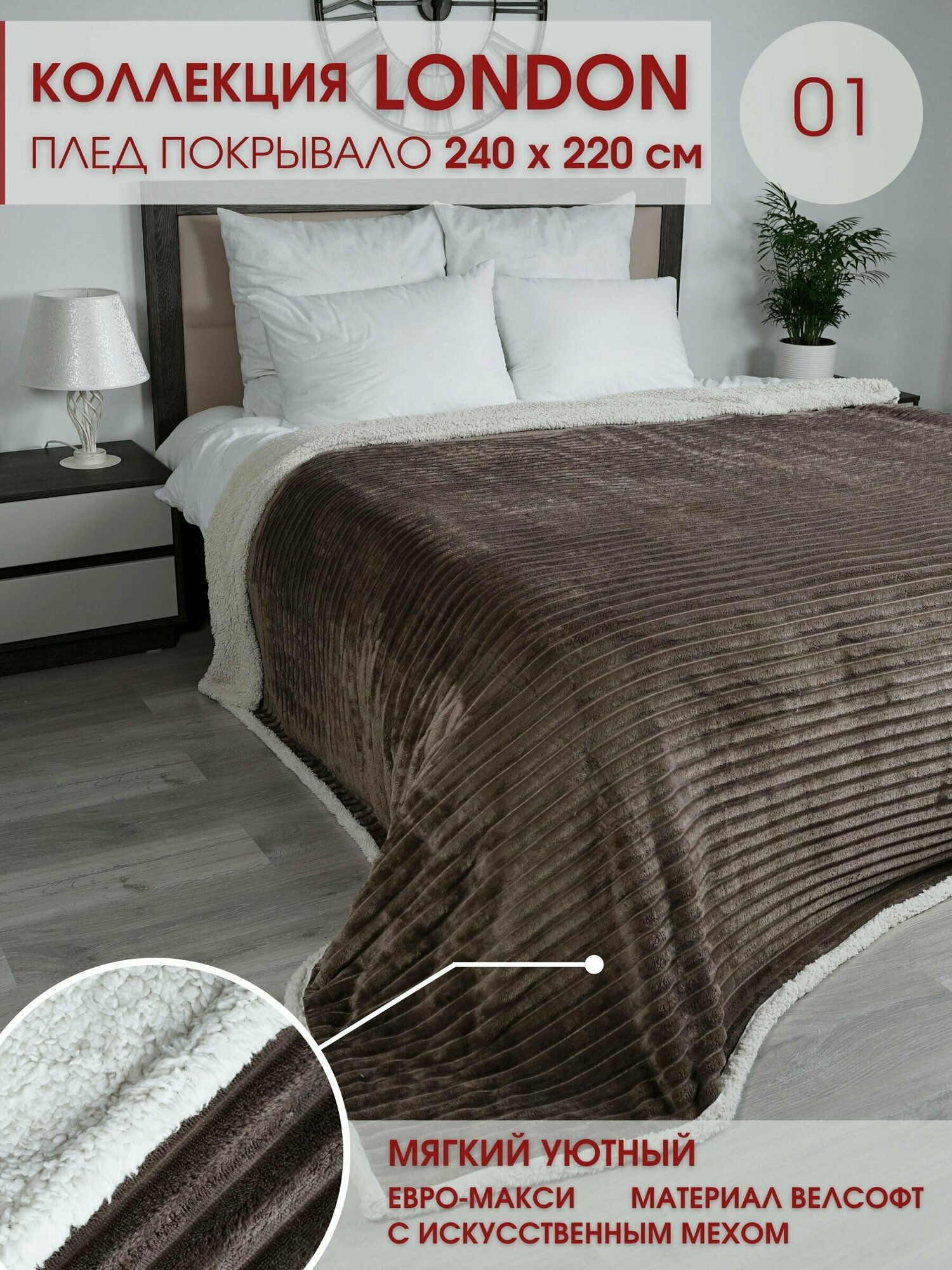 Плед на кровать двусторонний с мехом Лондон 20 240х220 см