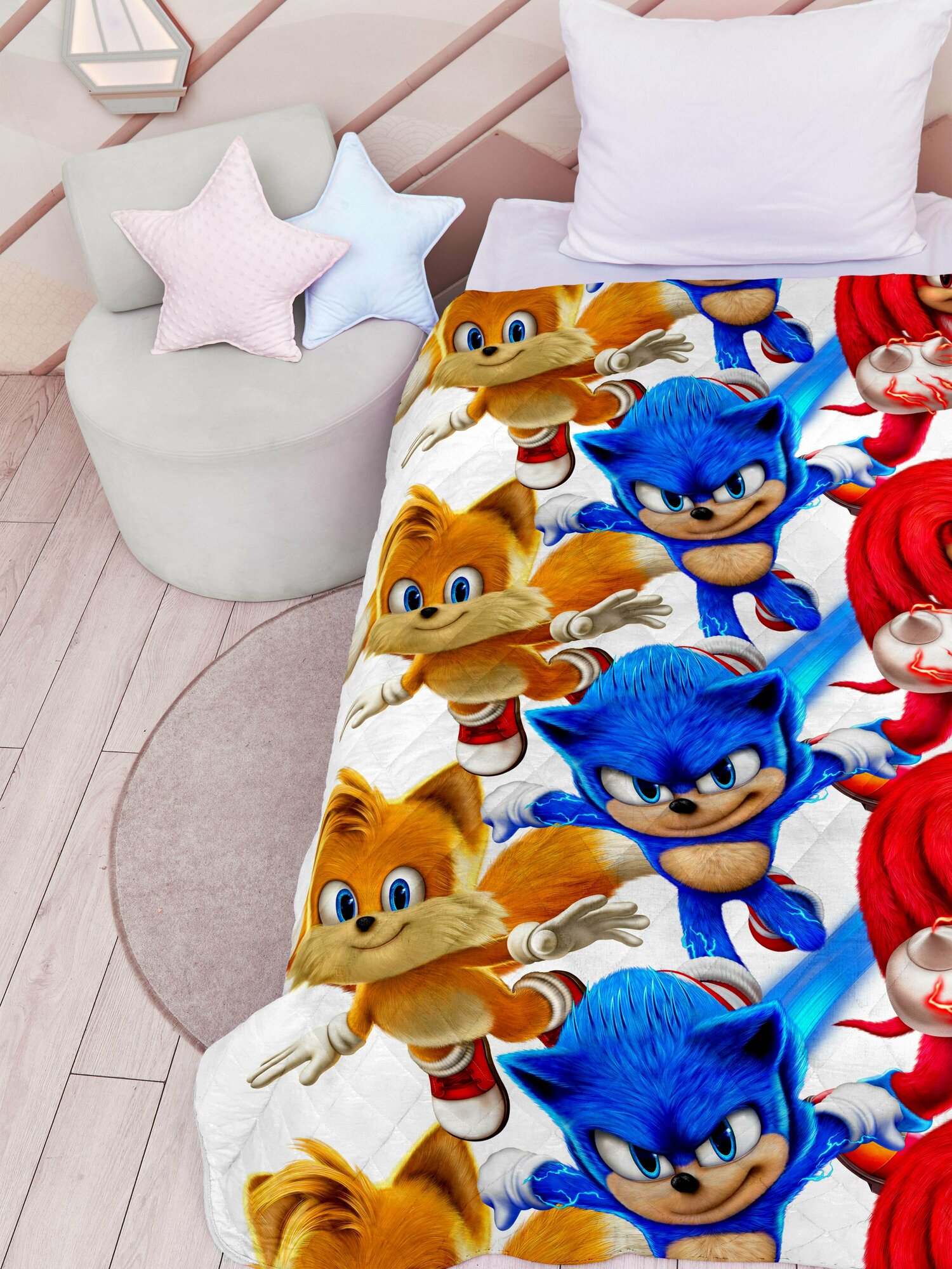 СохранитьДетское стеганое покрывало Juno "Соник" 16617, размер 145 x 200 интересное: