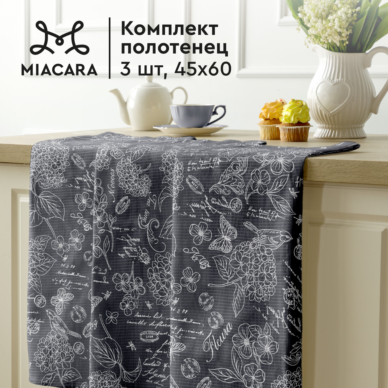 Купить Комплект вафельных полотенец 45х60 (3 шт.) "Mia Cara" 30284-11 Жозефина графит