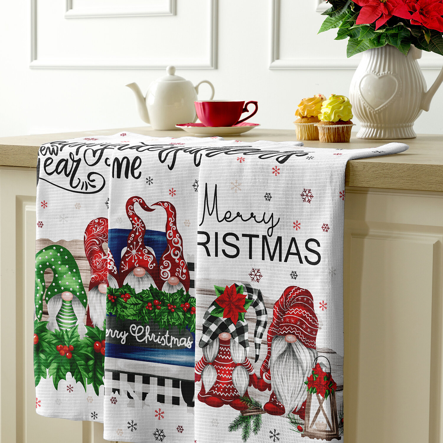 Купить Комплект вафельных полотенец 45х60 (3 шт.) "Mia Cara" рис 30440-1 Новогодние эльфы