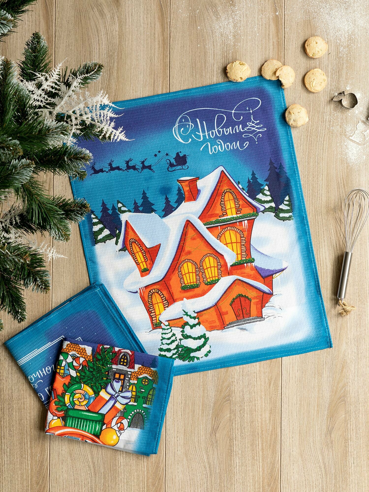 Набор вафельных полотенец 45х60 (3 шт.) "Mia Cara" рис 30586-1 Рождество