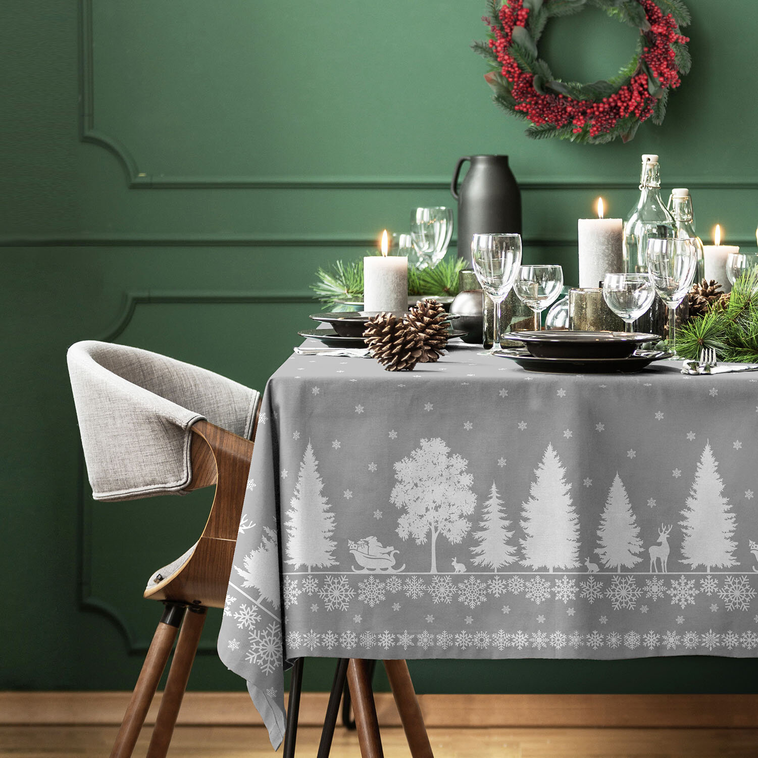 Комплект скатерть 145х180 + дорожка 50х180 "Унисон" рис 33280-3/33276-1 Elegant poinsettia