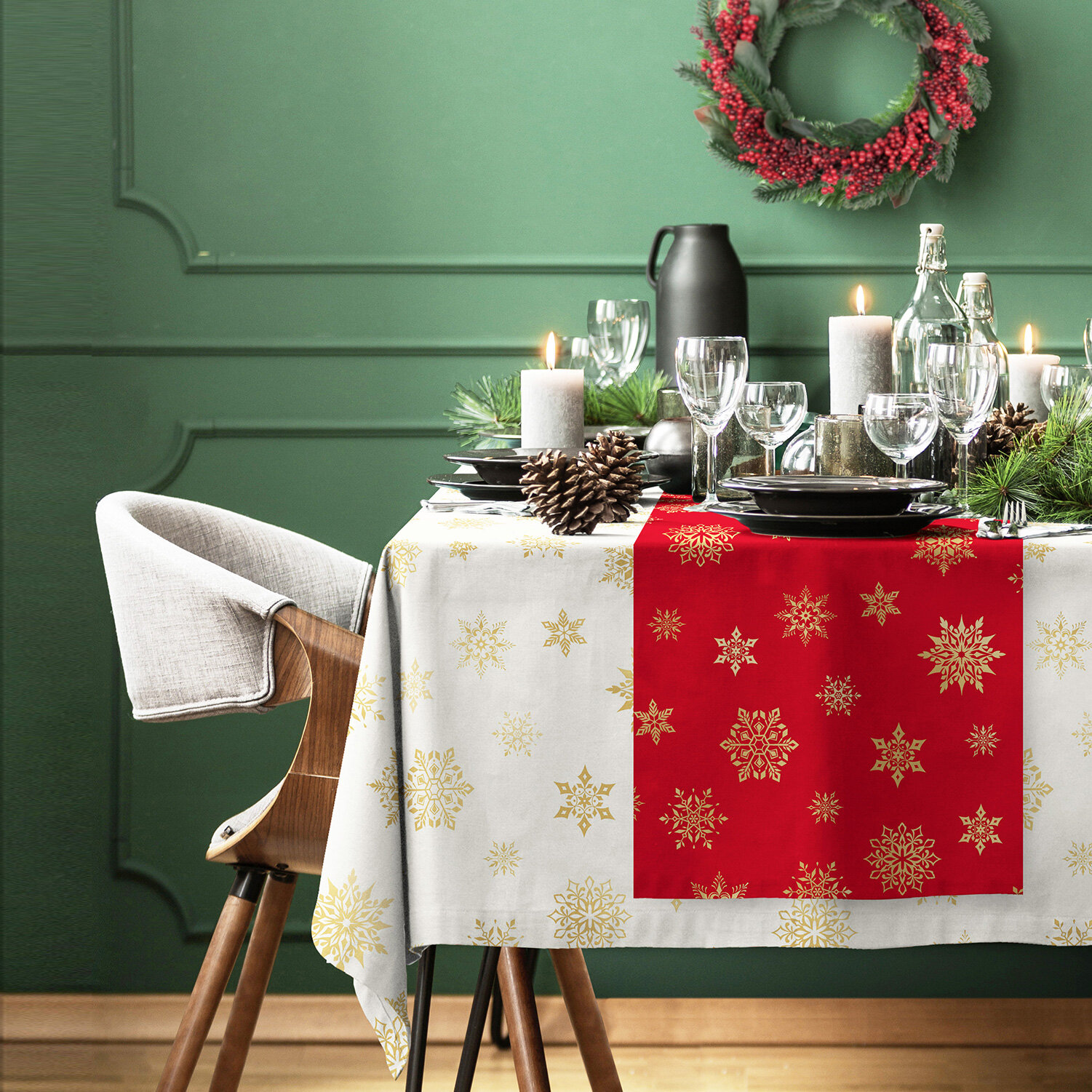 Комплект скатерть 145х180 + дорожка 50х180 "Унисон" рис 33280-3/33276-1 Elegant poinsettia