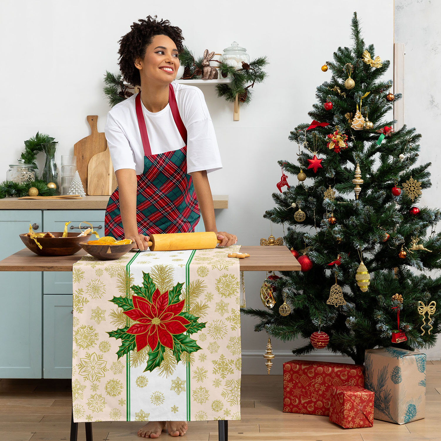 Комплект скатерть 145х220 + дорожка 50х220 "Унисон" рис 33280-3/33276-1 Elegant poinsettia