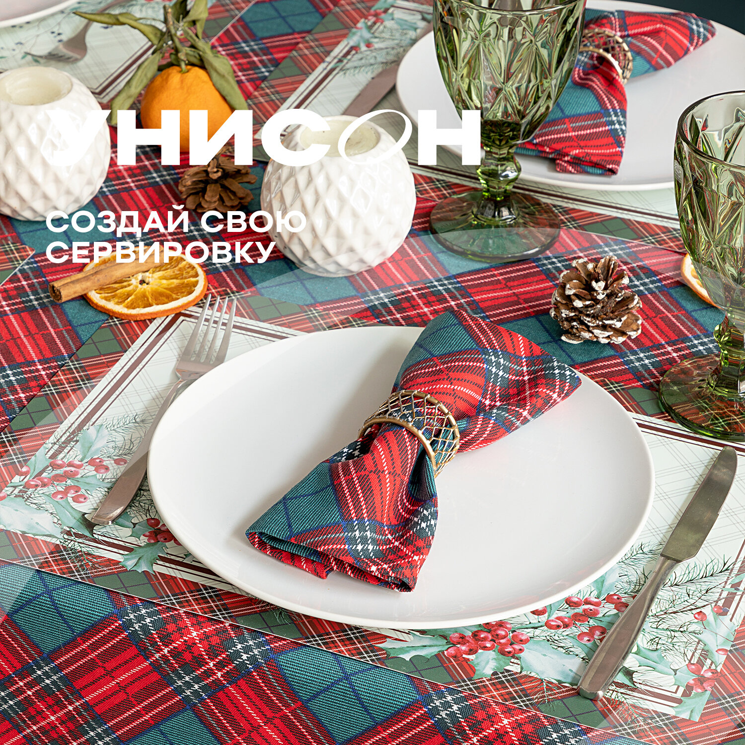 Комплект скатерть 145х220 + салфетки 32х32 (6 шт) "Унисон" рис 33217-2/33014-1 Jolly christmas