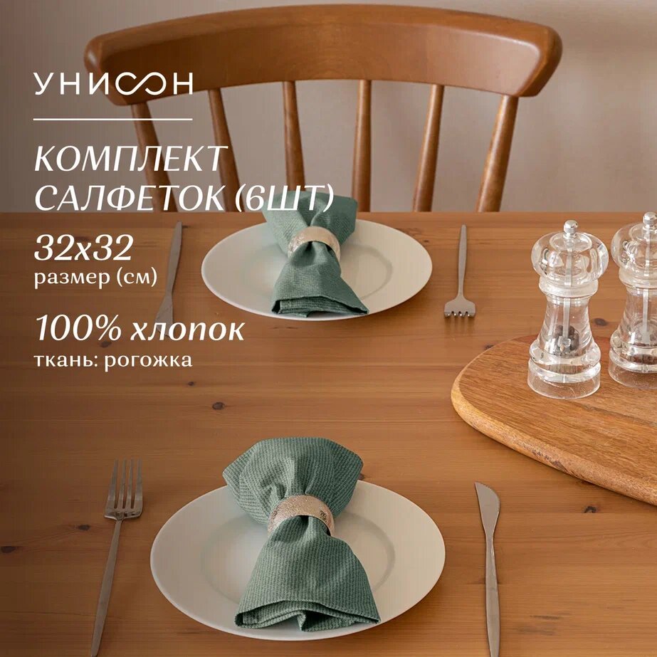 Купить Комплект салфеток рогожка 32х32 (6 шт.) "Унисон" рис 30004-20 Basic серо-зеленый
