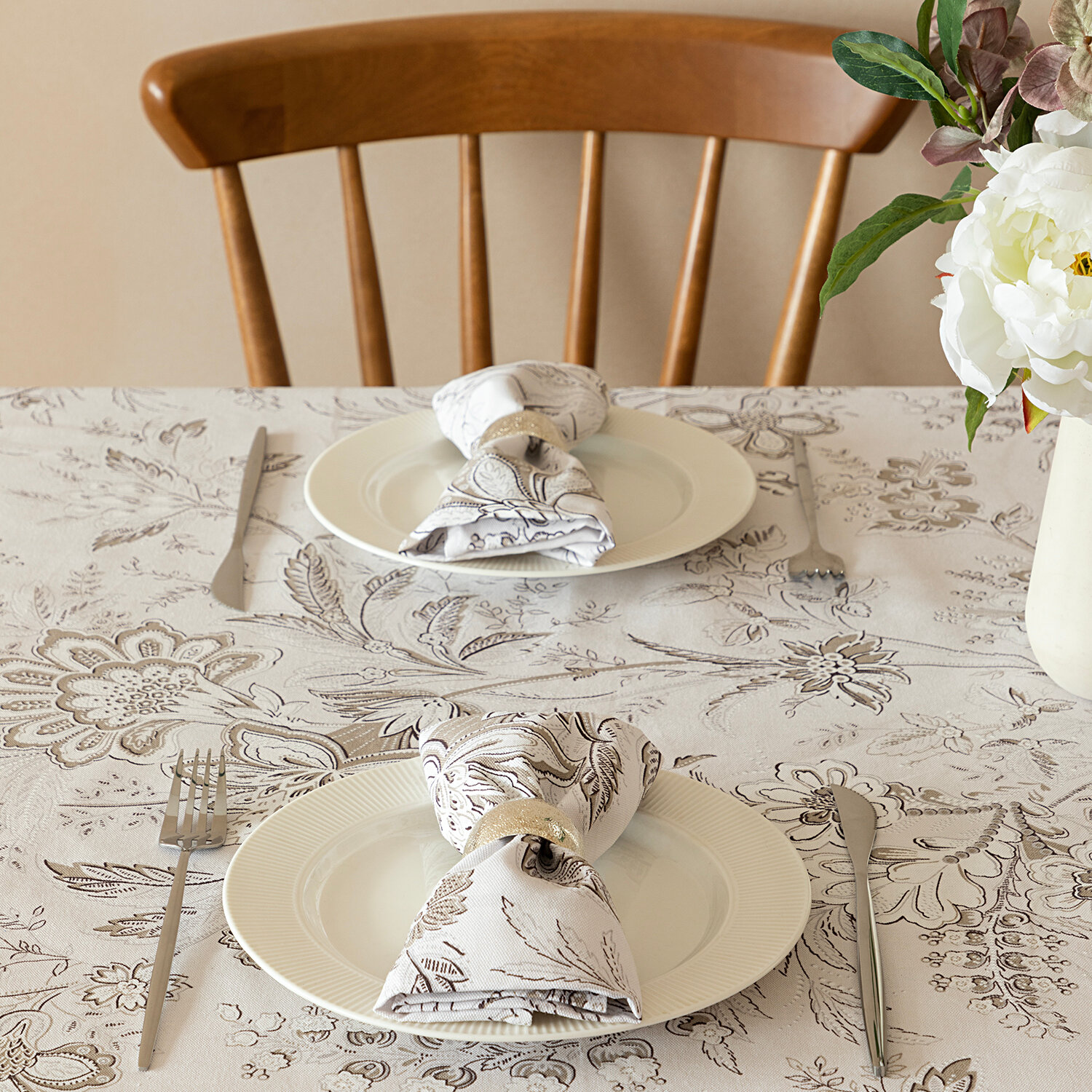 Комплект скатерть 145х220 + салфетки 32х32 (6 шт) "Унисон" рис 33090-3/33068-9 Botanica