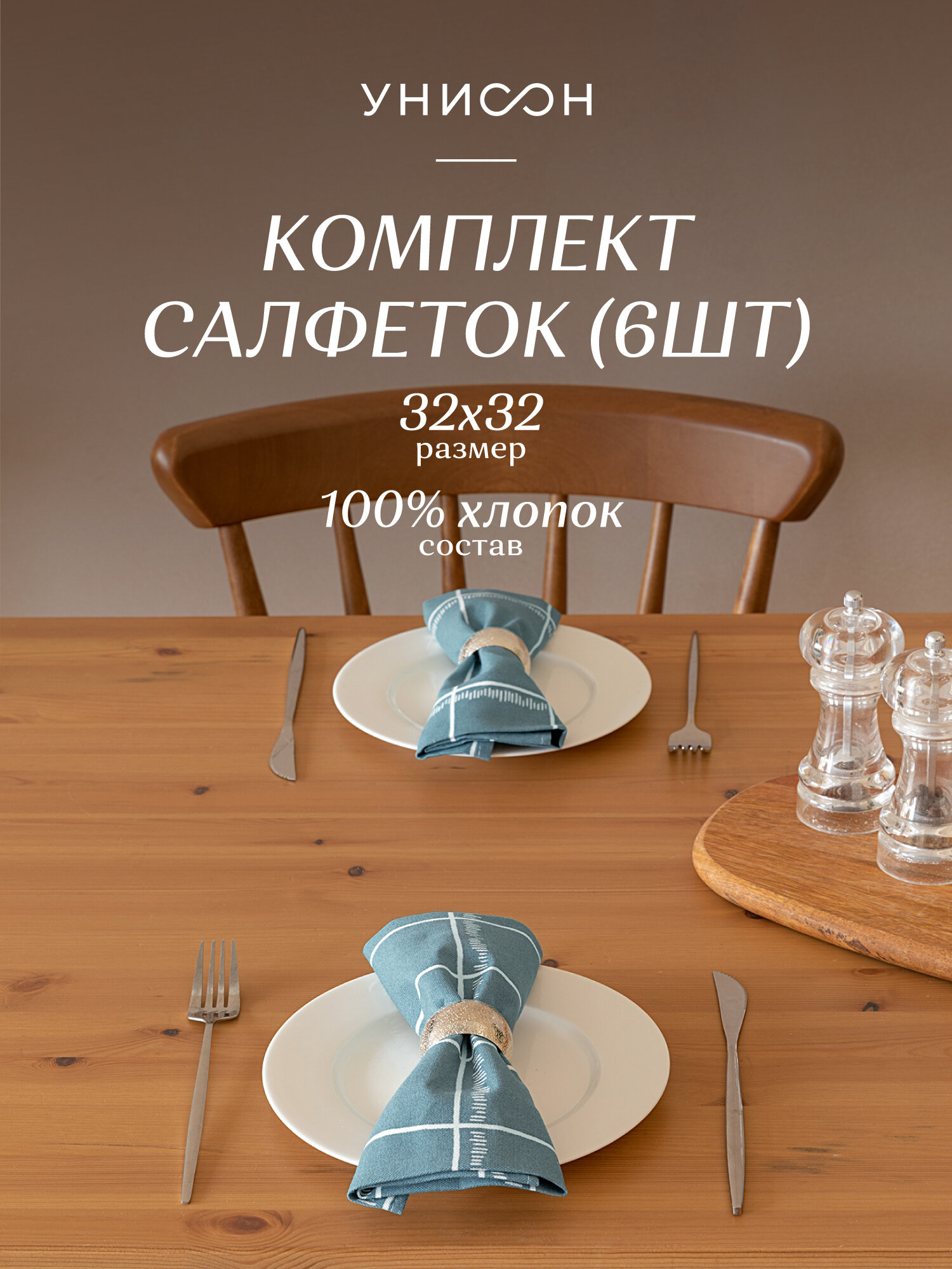 Салфетки на стол сервировочные 32х32 (6 шт) / набор сервировочных салфеток из хлопка "Унисон" рис 33014-1 Сell